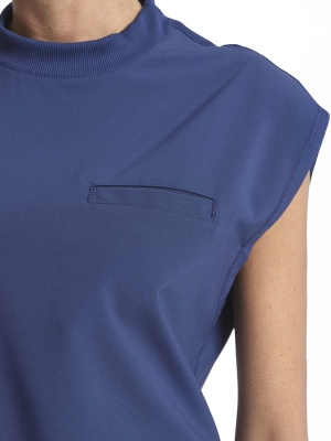 Wyróżnij się w pracy dzięki bluzie, która łączy modny krój z zaawansowanym komfortem noszenia. Okrągły dekolt wykończony subtelną stójką z miękkiej, prążkowanej dzianiny to detal, który nadaje całości unikalnego charakteru – idealny dla kobiet, które cenią sobie styl również w środowisku zawodowym. Ten sam elastyczny materiał wykorzystano na całej długości pleców, zapewniając dopasowanie, pełen zakres ruchów i doskonałą oddychalność.