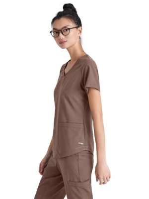 Damska bluza medyczna Rhythm Top z kolekcji Grey’s Anatomy™ Evolve by Barco  to klasyczny V-neck w nowoczesnej odsłonie, z 2 kieszeniami i ekologiczną tkaniną stretch.