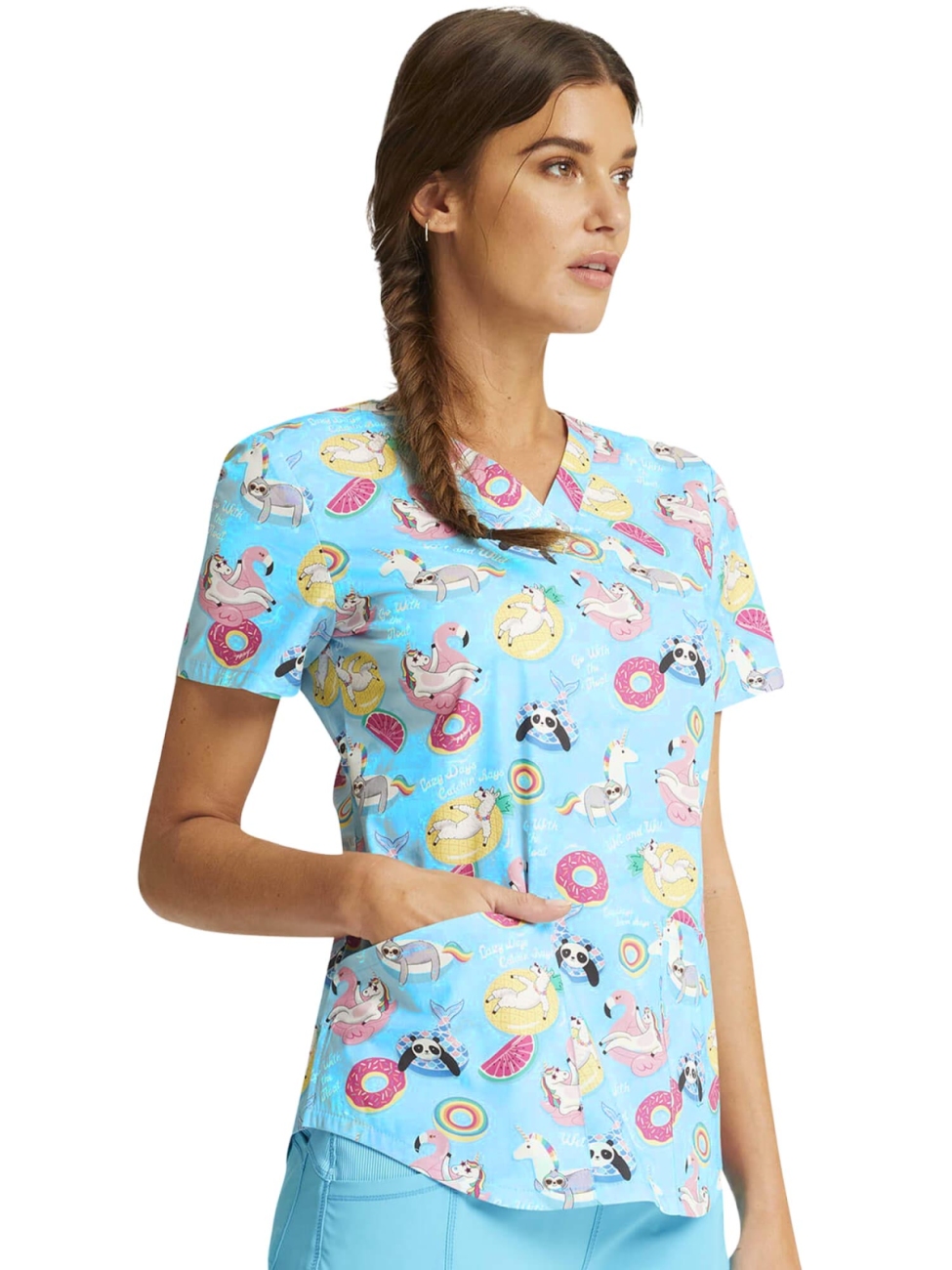 Klasyczny krój z dekoltem typu V-neck oraz rozcięciami po bokach gwarantuje, że będziesz się czuła wyjątkowo i stylowo. Wysoka zawartość bawełny oraz dodatek spandexu sprawia, że bluza jest elastyczna, komfortowa oraz wytrzymała. W naszej bluzie niestraszne będą nawet wielogodzinne dyżury. Dwie przednie kieszenie z pewnością pomieszczą wszystkie niezbędne akcesoria.