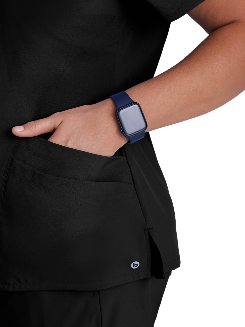 Bluza Barco One Pulse to nowoczesna propozycja dla kobiet, które potrzebują profesjonalnej odzieży medycznej łączącej funkcjonalność, wygodę i ekologiczne podejście. Jej klasyczny fason z dekoltem w serek i krótkim rękawem gwarantuje pełen komfort ruchów, a tkanina o elastyczności 360° stretch idealnie dopasowuje się do ciała. To model, który świetnie sprawdza się w każdym środowisku – od kliniki po gabinet weterynaryjny.