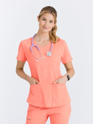 Bluza Barco One Pulse to nowoczesna propozycja dla kobiet, które potrzebują profesjonalnej odzieży medycznej łączącej funkcjonalność, wygodę i ekologiczne podejście. Jej klasyczny fason z dekoltem w serek i krótkim rękawem gwarantuje pełen komfort ruchów, a tkanina o elastyczności 360° stretch idealnie dopasowuje się do ciała. To model, który świetnie sprawdza się w każdym środowisku – od kliniki po gabinet weterynaryjny.