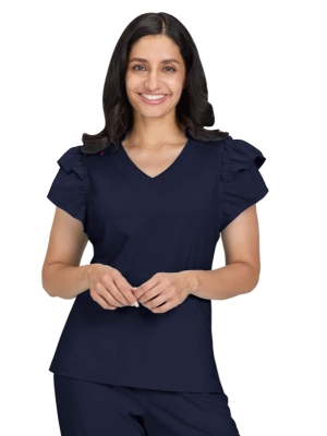 Bluza medyczna damska granatowa z falbankami Koi Clary Navy
