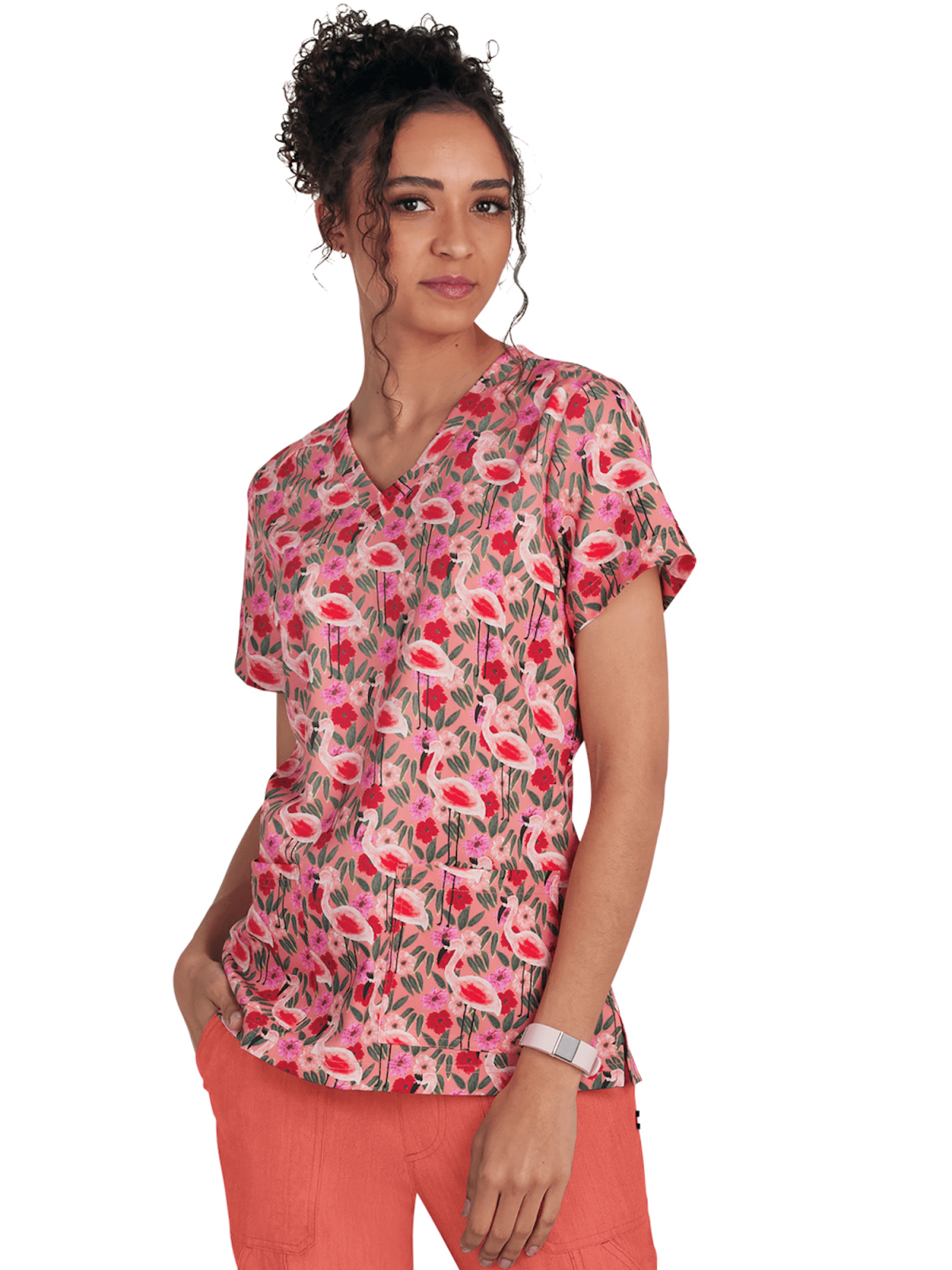 Bluza medyczna damska KOI Artists Series Rosalie Flamingi i Kwiaty FGF*