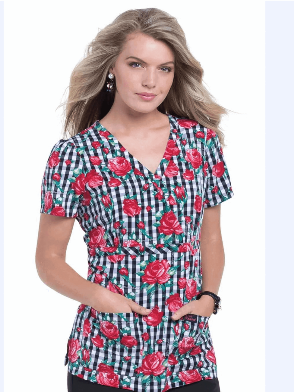 Bluza medyczna jest wykonana w stylu i jakości jakiej oczekujesz od kolekcji Betsey Johnson. Wzór Bell EKG to czerwone i czarne serca na białym tle.