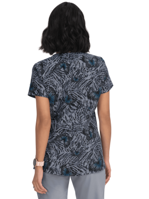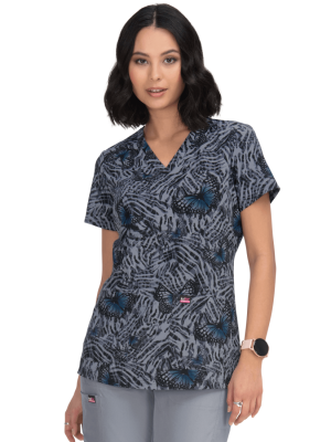 Bluza medyczna damska taliowana w motyle na tle motywów zwierzęcych Koi Align Freedom Flight*