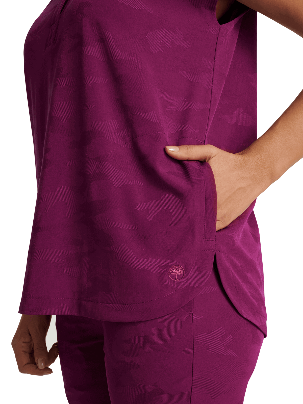 Bluza medyczna damska z wzorem moro bordowa HH Camo Journey Wine