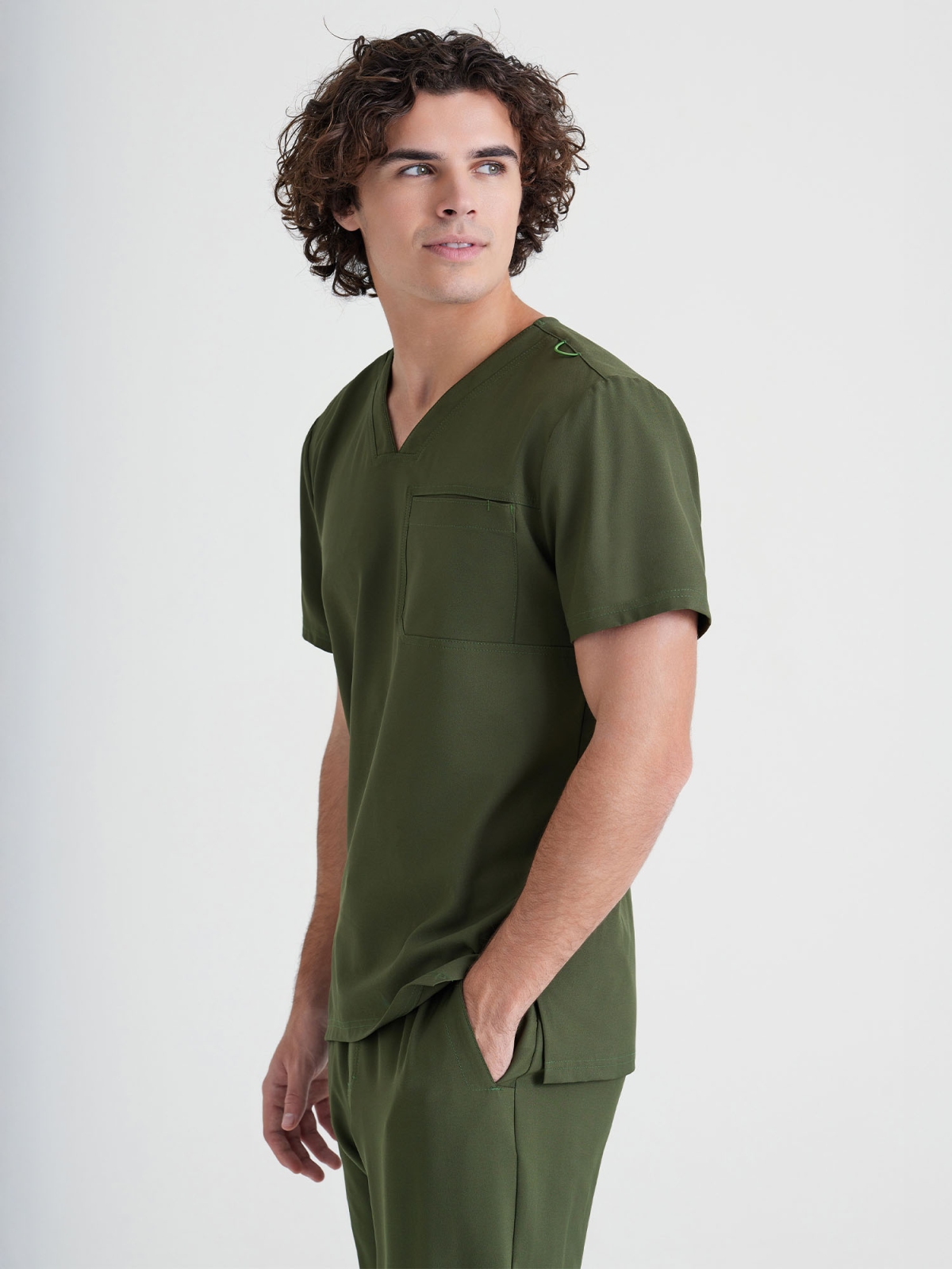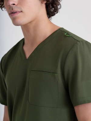 Journey to nowoczesna bluza medyczna z kolekcji Grey’s Anatomy™ Evolve. Dekolt V z kontrastowym lamowaniem nadaje całości profesjonalny, nowoczesny wygląd, a uniwersalny fason pozwala nosić bluzę zarówno na zewnątrz, jak i wpuszczoną w spodnie. Elastyczny materiał zapewnia komfort przez cały dzień pracy, skutecznie odprowadza wilgoć i ogranicza zagniecenia. Praktyczna kieszeń na klatce piersiowej oraz zielona pętelka na identyfikator podkreślają funkcjonalny charakter modelu.