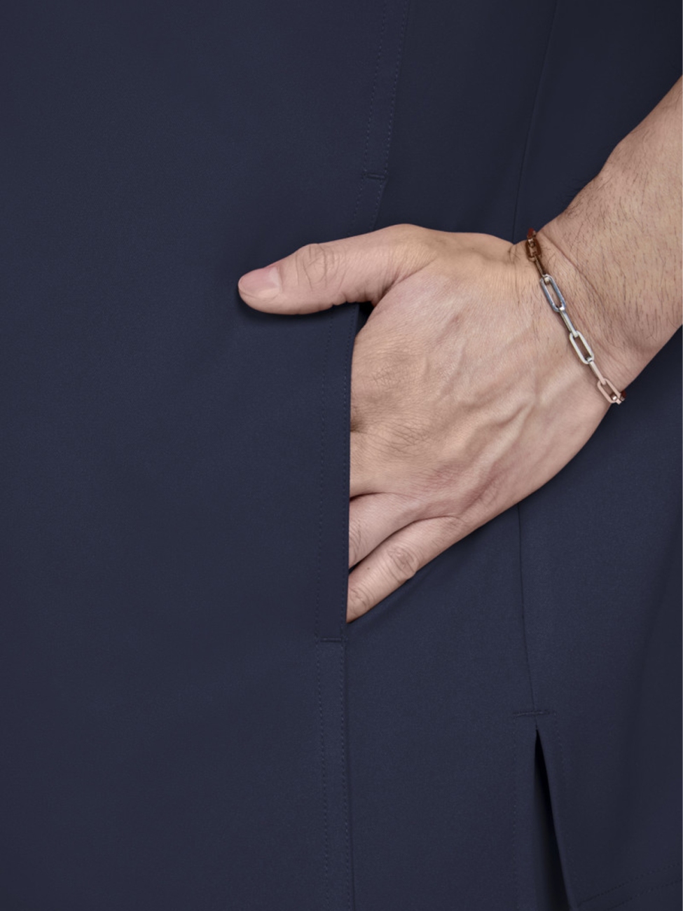 Bluza Stasis to klasyczny fason z nowoczesnym wykończeniem – lekka, elastyczna, gotowa na każdą zmianę. Dwa schowki, trzy miejsca na długopisy i komfort, który Cię nie zawiedzie.