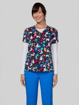 Dekolt typu sportowy V-neck, oddychające panele z siateczki i klasyczny, kobiecy krój sprawiają, że ten model świetnie leży i wygląda dynamicznie. Dwie kieszenie i rozcięcia po bokach to praktyczne detale, które doceni każda profesjonalistka. Wzór z kolorowymi czaszkami to ukłon w stronę śmiałych stylizacji – bo medycyna też może być kolorowa!