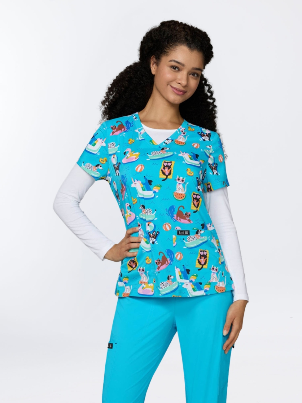 Bluza medyczna we wzorki Koi Leslie Floaties