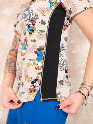 Bluza medyczna z Myszką Miki, Donaldem i Goofym to wyrazisty wybór dla tych, którzy cenią wygodę, jakość i pozytywne podejście do pracy. Licencjonowany wzór Disneya przyciąga wzrok i poprawia nastrój, a dopracowany krój i trwała tkanina zapewniają komfort przez cały dzień.