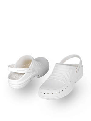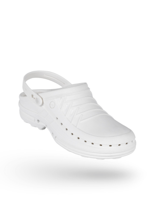 Obuwie medyczne WOCK Clog wyróżnia się specjalnym procesem produkcji i składem materiału, który przeciwdziała rozwojowi bakterii i jest odporny na wysokie temperatury, dzięki czemu obuwie może być prane i sterylizowane w autoklawie w wysokich temperaturach.