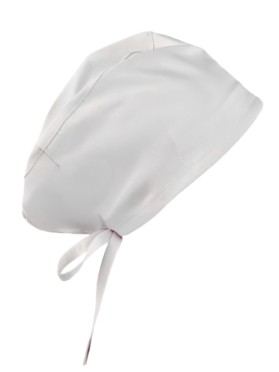 Czepek medyczny wiązany na umieszczone z tyłu tasiemki . Na przodzie czepka dla lepszego dopasowania została wszyta gumka.