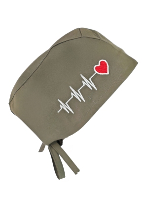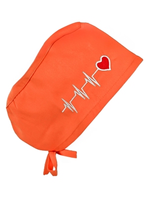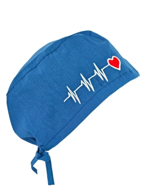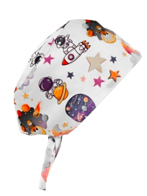 Czepek medyczny wiązany na umieszczone z tyłu tasiemki . Na przodzie czepka dla lepszego dopasowania została wszyta gumka.