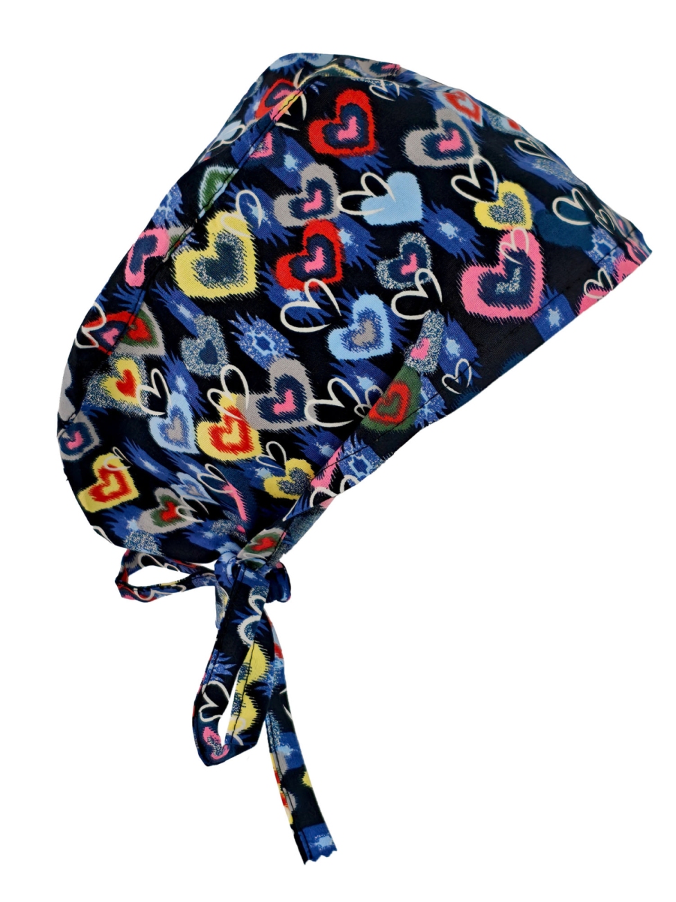 Czepek medyczny wiązany na umieszczone z tyłu tasiemki . Na przodzie czepka dla lepszego dopasowania została wszyta gumka.
