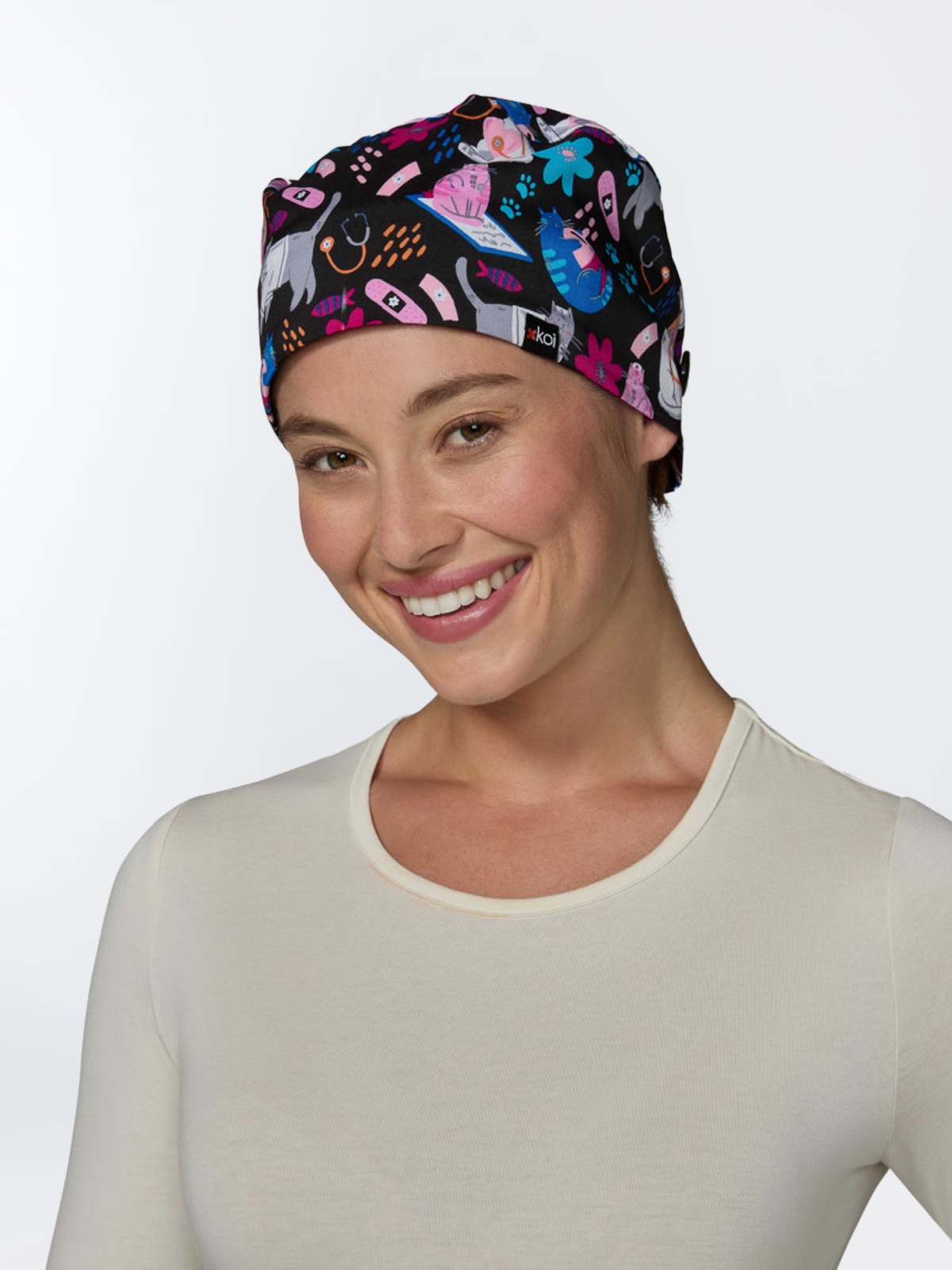 Poznaj Koi | Smiley World Unisex Skull Cap – Ten lekki, elastyczny czepek to nie tylko ochrona włosów, ale i mocny akcent w Twoim medycznym wyglądzie.