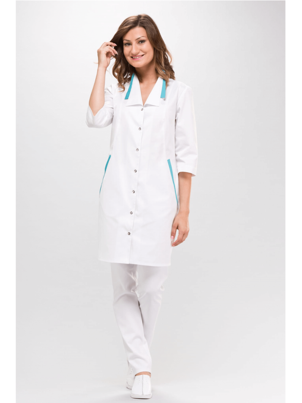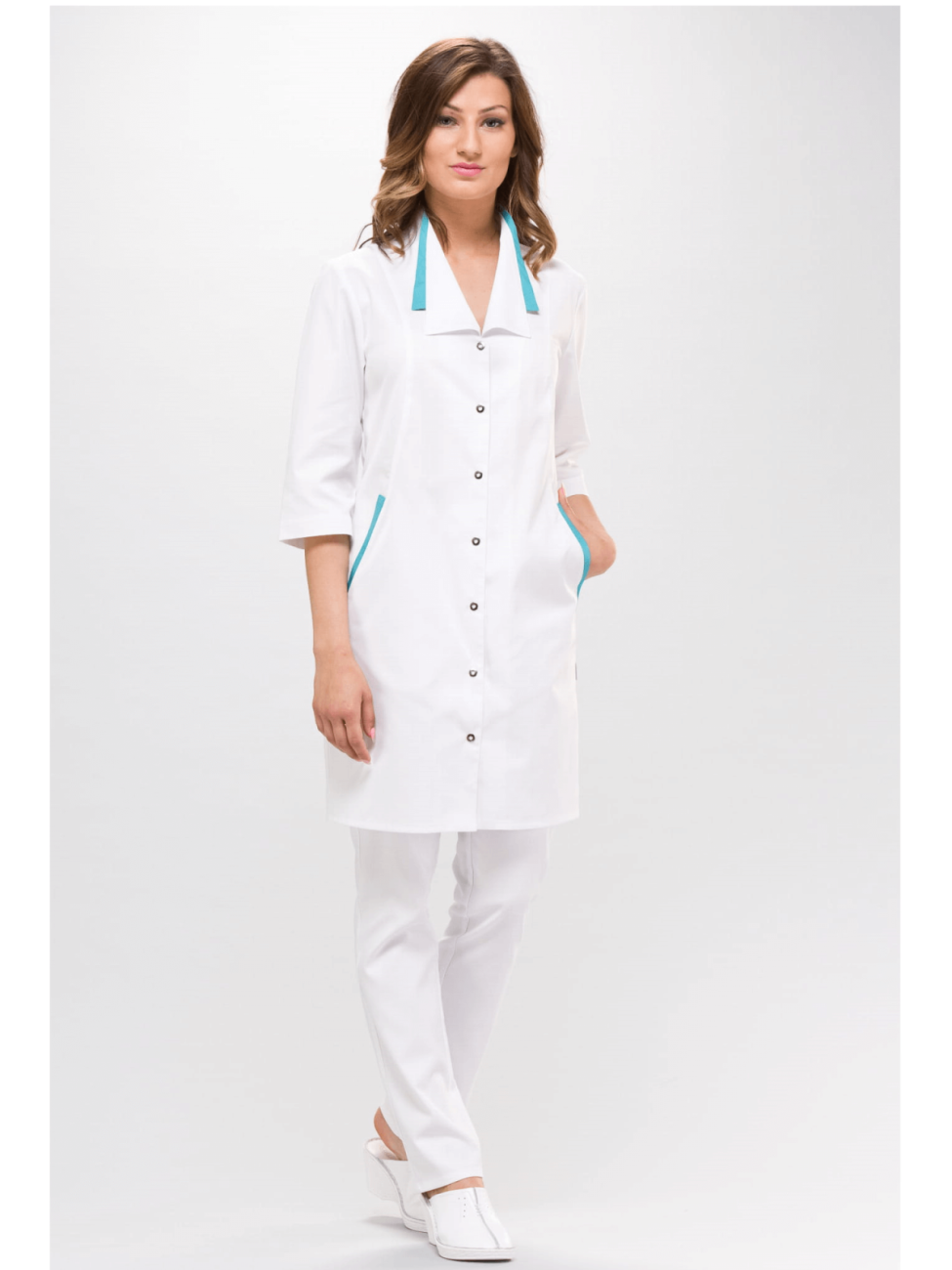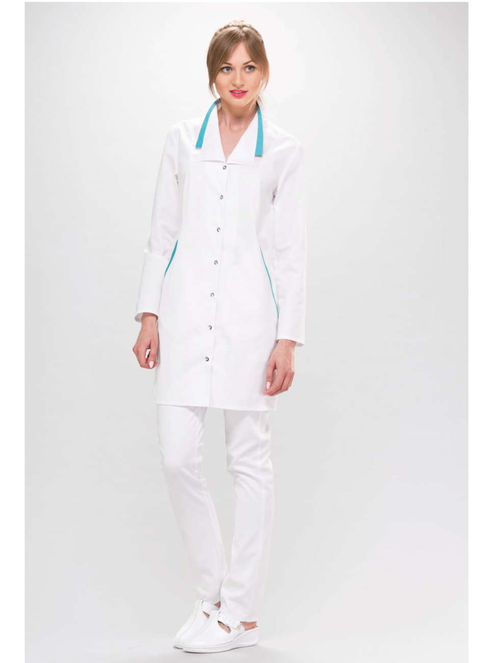 Fartuch medyczny damski biały z turkusem zapinany na napy Eldan Maja