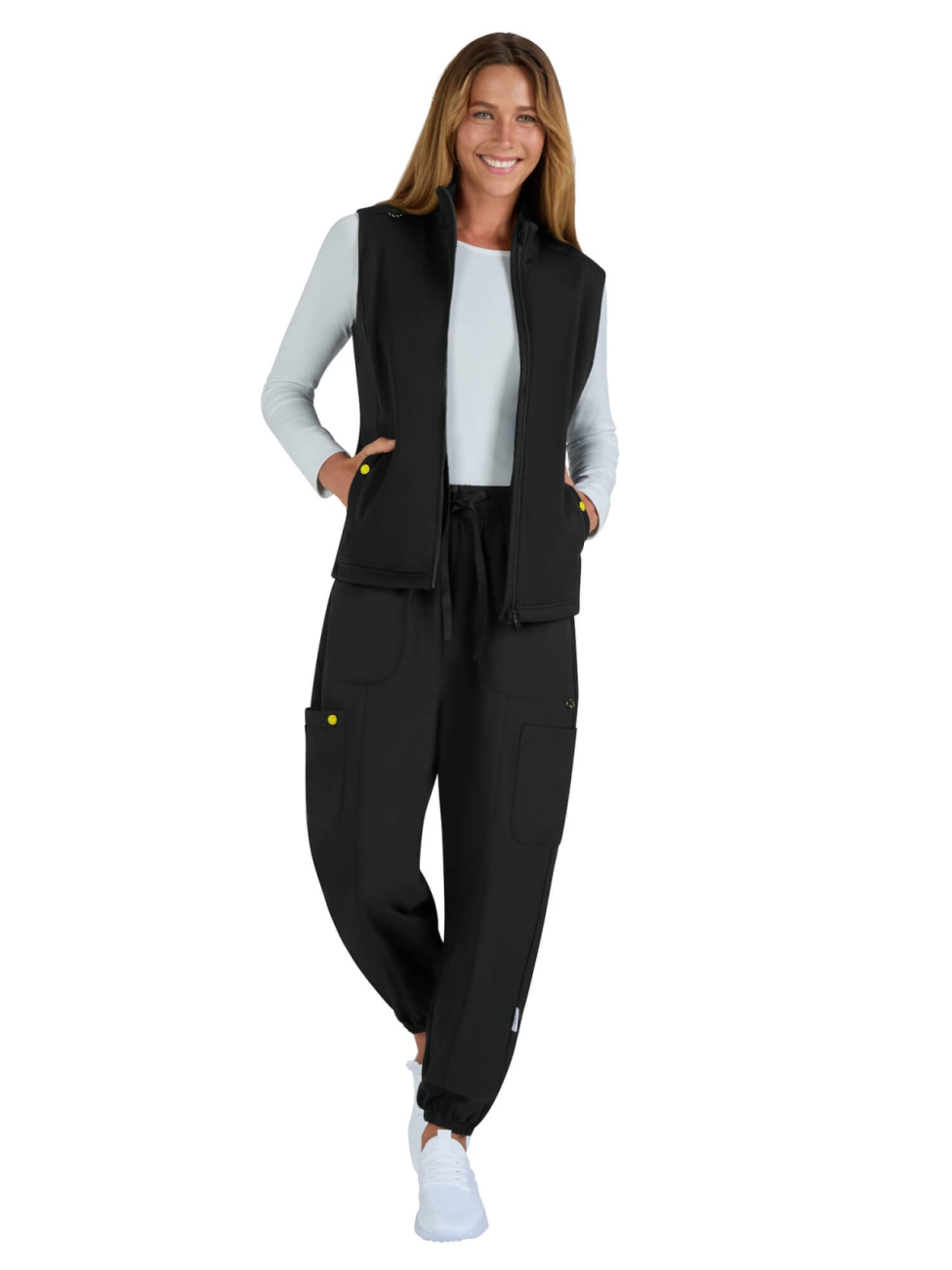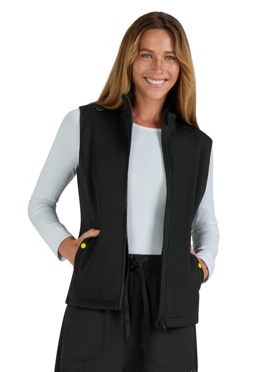 Dzięki praktycznym rozwiązaniom, takim jak dwie przestronne kieszenie oraz pętelka na identyfikator, kamizelka jest niezwykle funkcjonalna.