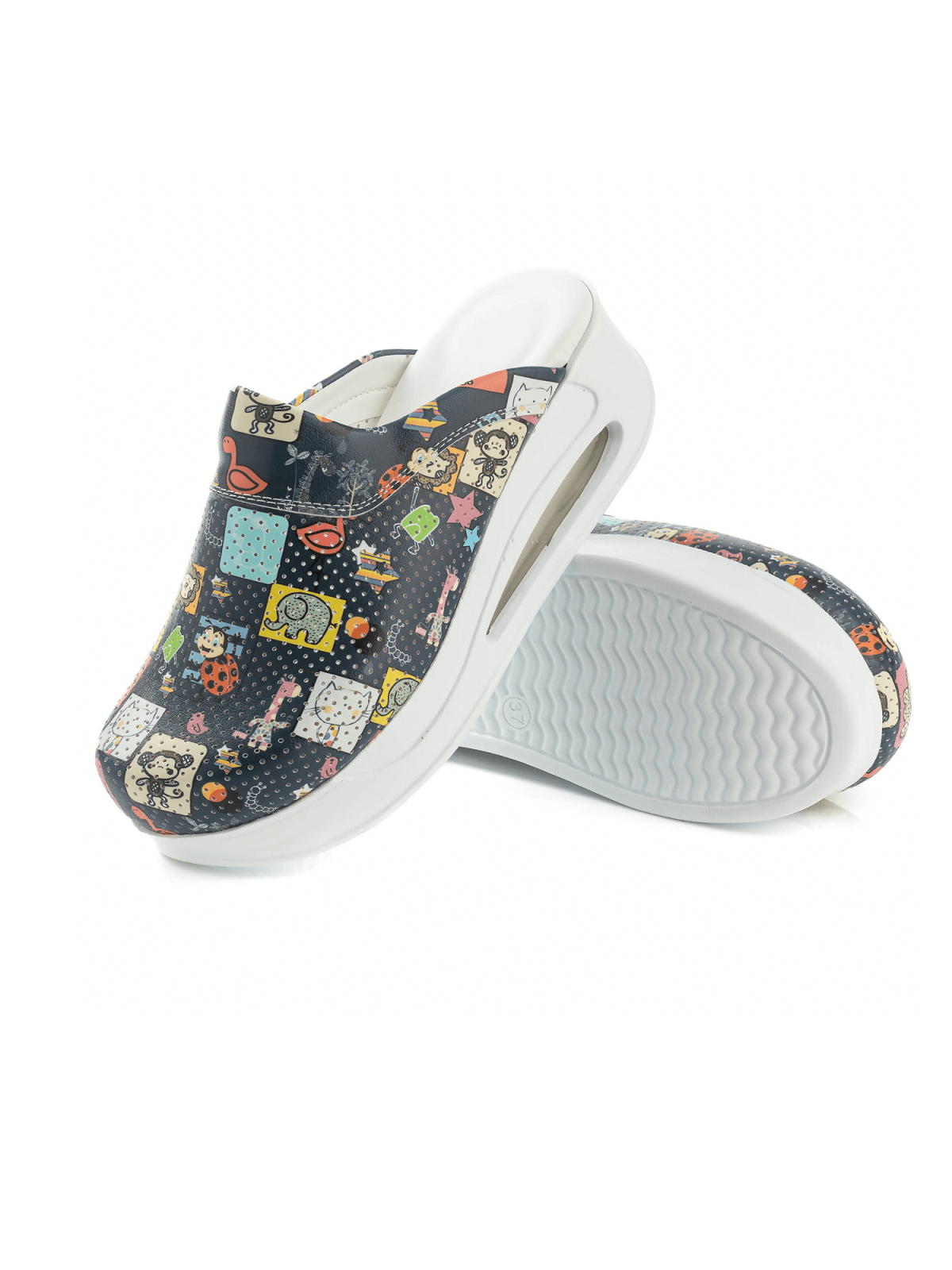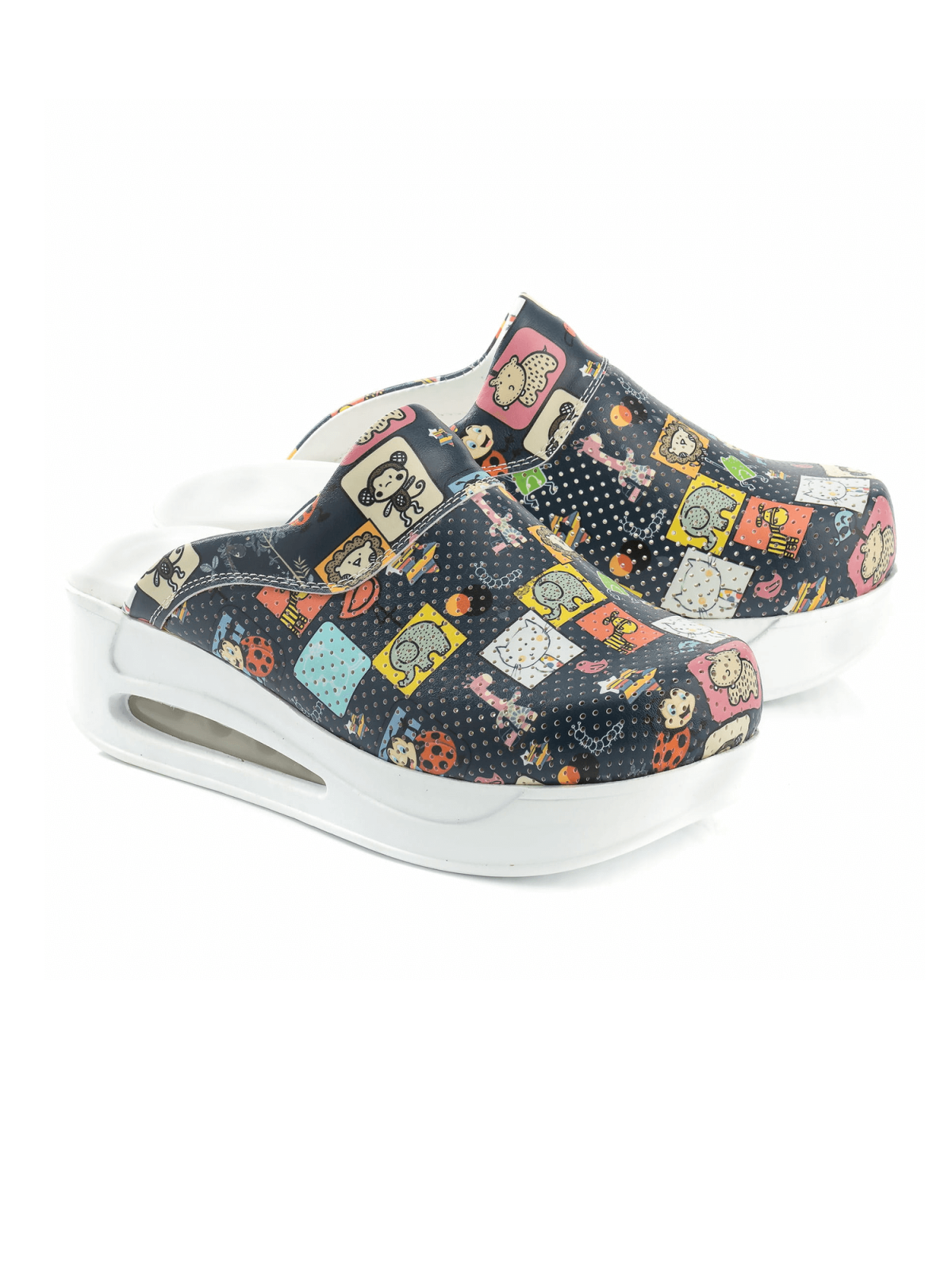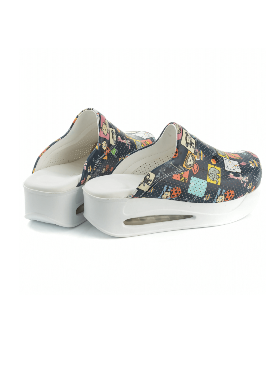 Charakterystycznym dla obuwia są urocze kolorowe wzorki idealnie nadające się nie tylko na oddziały dziecięce, na których z pewnością wzbudzisz zachwyt podopiecznych, ale również do każdej placówki medycznej, aby dodać Twojemu mundurkowi medycznemu niesamowitego uroku i super oryginalności.