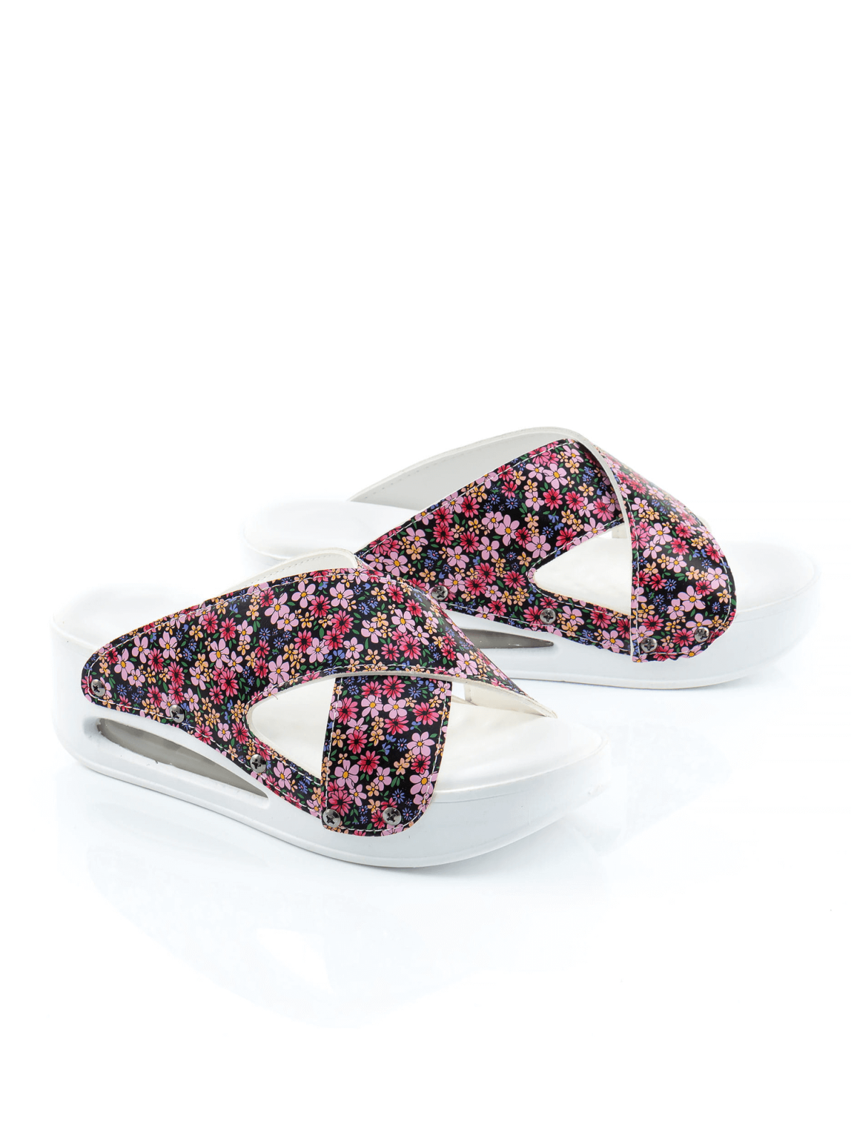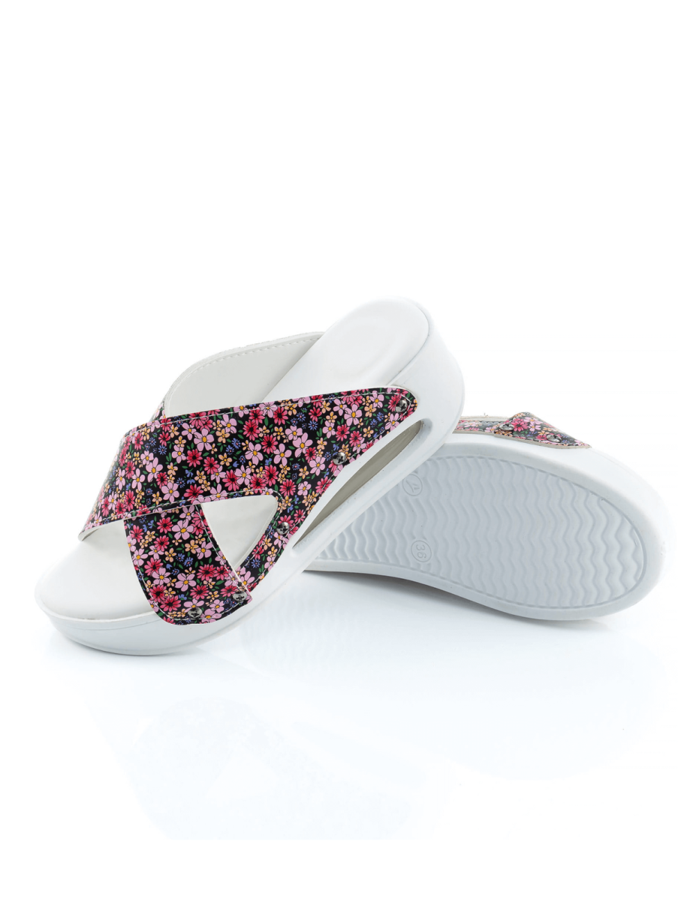 Klapki medyczne damskie Airmax z odkrytymi palcami Dr Mitra Kwiatki 059