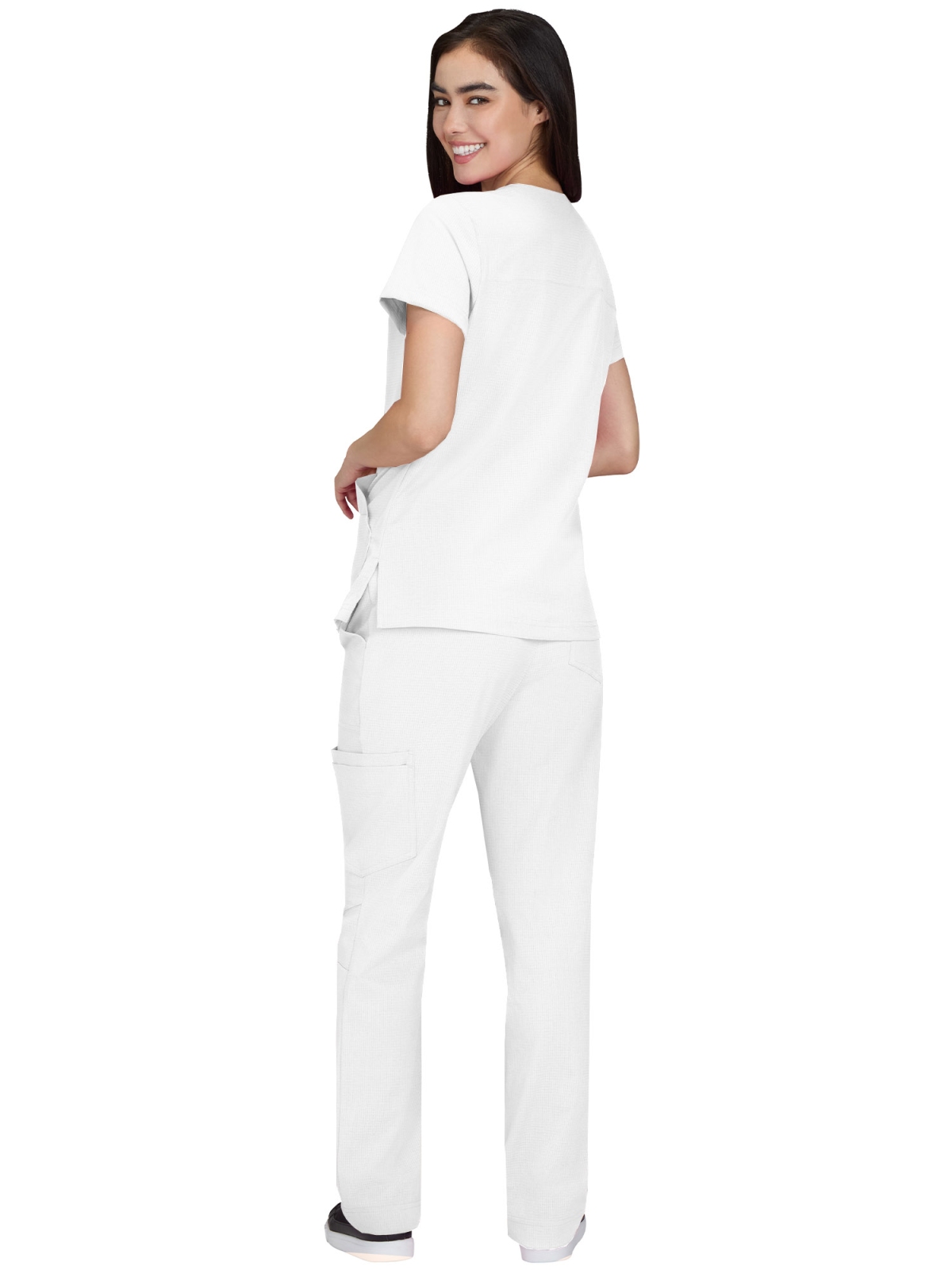 Kolekcja Solis x Koi to połączenie niezwykłej miękkości i przewiewności – cech, które zapewniają komfort nawet podczas wielogodzinnych dyżurów. Tkanina jest lekka, oddychająca i przyjemna w dotyku, co odczujesz już przy pierwszym założeniu. Dzięki technologii 4-way stretch ubrania dopasowują się do Twojego ciała, podążając za każdym ruchem bez żadnych ograniczeń. Idealnie sprawdzi się latem, ale docenisz ją również w klimatyzowanych pomieszczeniach i podczas intensywnego dnia w pracy.