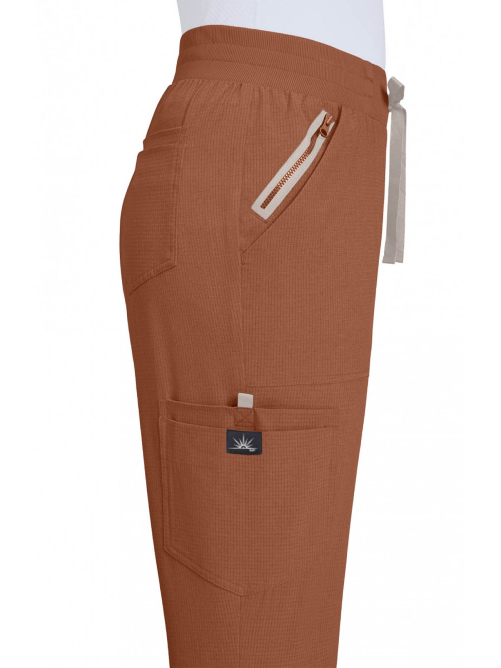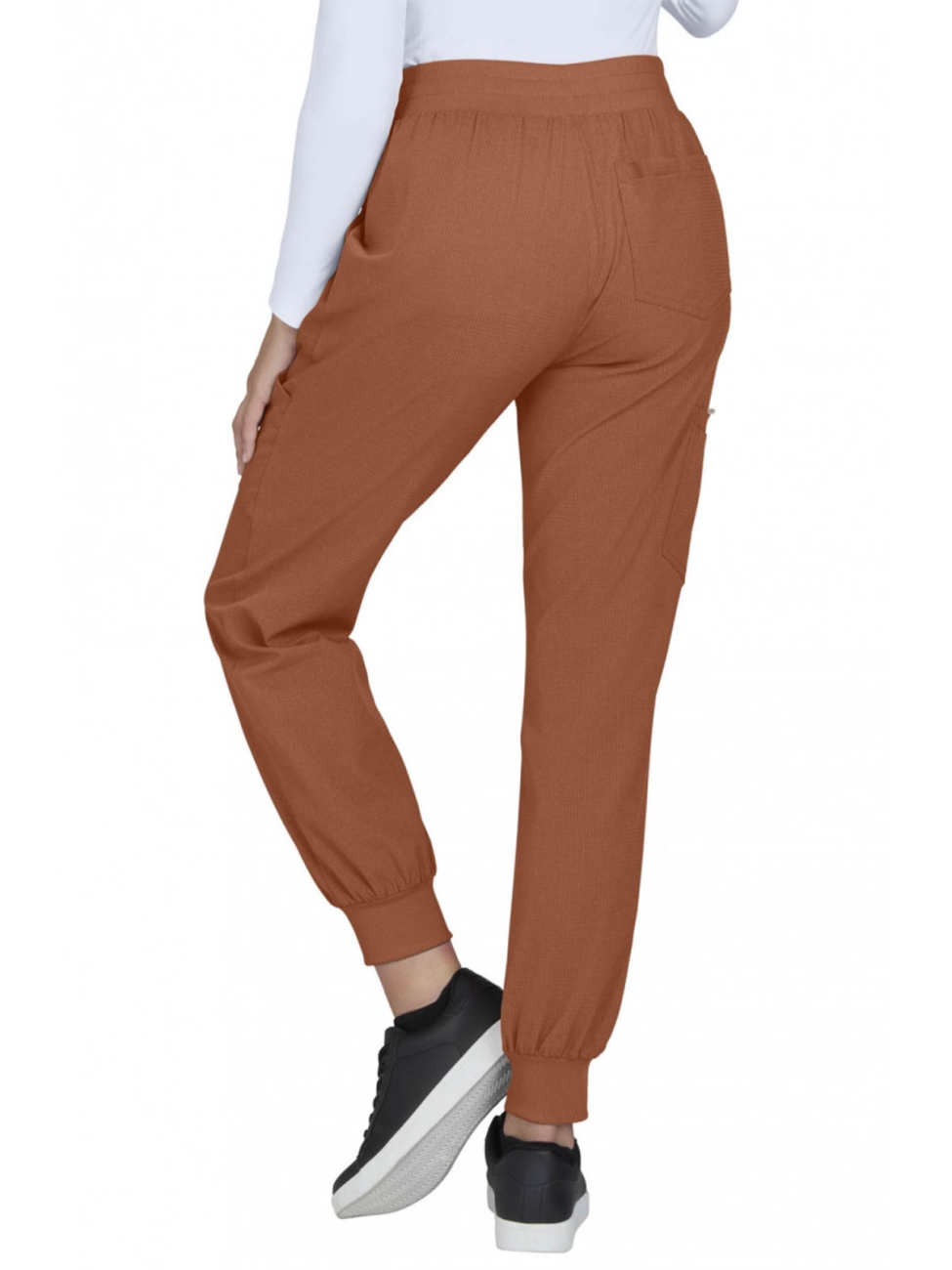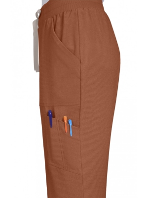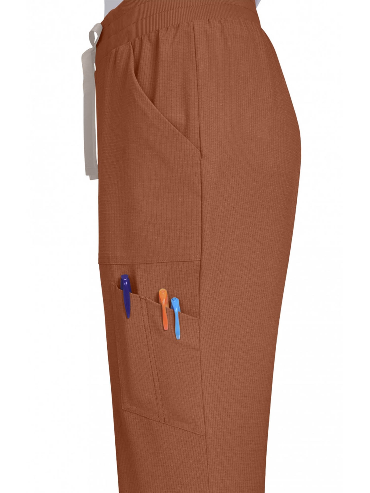 Przede wszystkim funkcjonalność na najwyższym poziomie. Aż 7 praktycznych kieszeni, w tym przemyślane przegródki na drobiazgi, pozwalają mieć przy sobie wszystko, czego potrzebujesz — od telefonu po akcesoria medyczne. Elastyczny pas ze sznurkiem daje idealne dopasowanie, a prążkowane mankiety przy kostkach dodają nowoczesnego, sportowego charakteru. Materiał ExoFlex™ zapewnia doskonałą wytrzymałość, odporność na codzienne użytkowanie i elastyczność, która pracuje razem z Tobą.