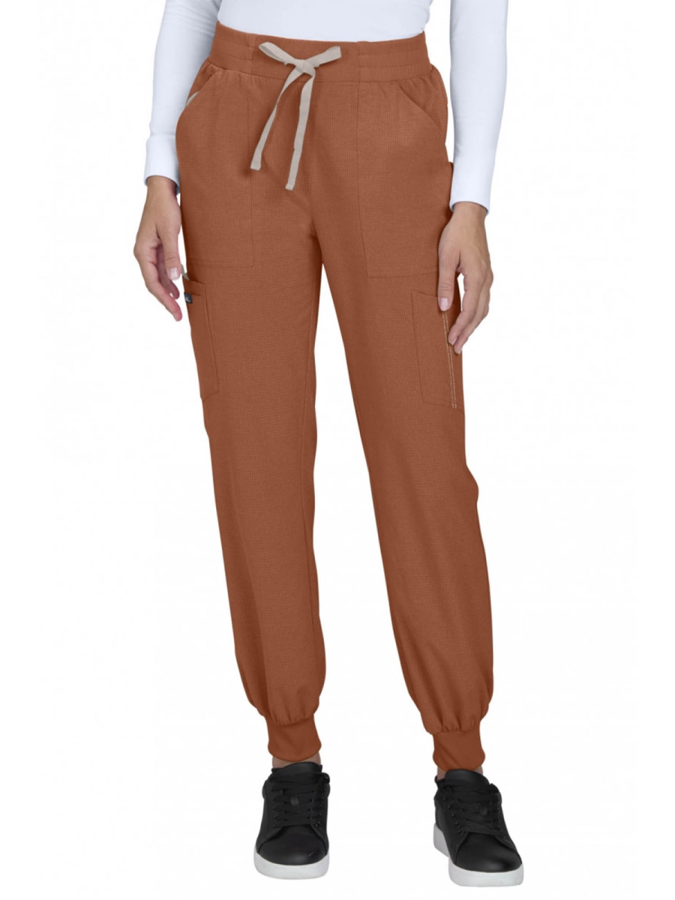 Model Hettie z kolekcji Solis x Koi to joggery stworzone dla specjalistek, które chcą połączyć maksymalny komfort z nowoczesnym stylem. Wykonane z ultrawytrzymałej, a jednocześnie miękkiej jak jedwab tkaniny ExoFlex™, gwarantują wygodę od pierwszego kroku aż do końca dyżuru. Ich luźniejszy, współczesny krój pięknie układa się na sylwetce, zapewniając swobodę ruchu niezależnie od tempa dnia.