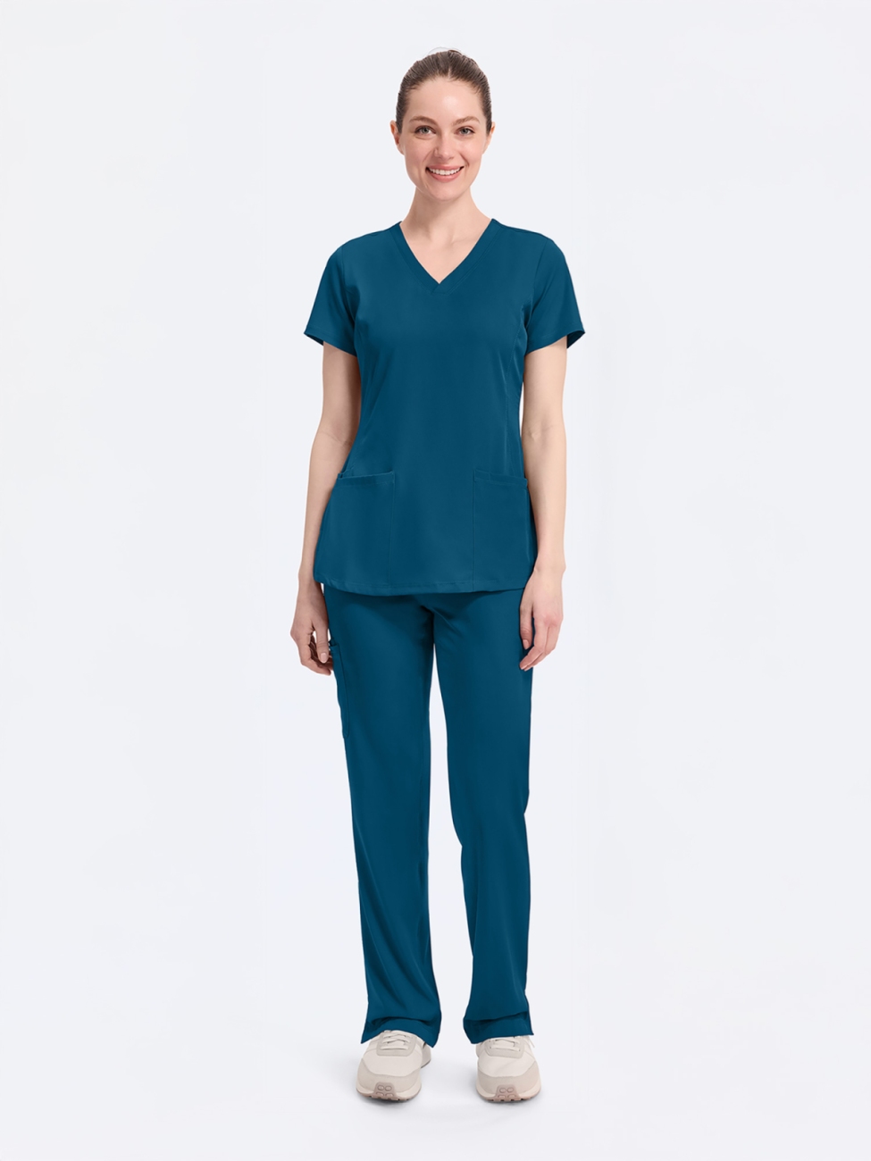Funkcjonalne kieszenie (na telefon, nożyczki, długopis), sprytne cięcia i elastyczne wstawki – każdy element ma swoje zadanie. Efekt? Organizacja pod ręką, mniej zbędnych ruchów, więcej uwagi dla pacjenta.