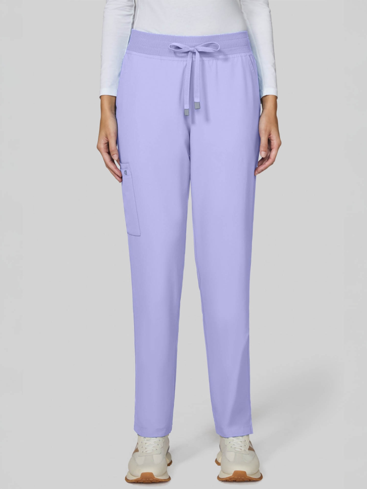 Największym atutem Atria jest szeroka, miękka guma w pasie z regulacją na troczek, która utrzymuje spodnie dokładnie tam, gdzie trzeba. Prosta, klasyczna nogawka zakończona rozcięciem pięknie układa się na każdym obuwiu medycznym, a konstrukcja z 100% poliestru zapewnia lekkość, przewiewność i wyjątkową wygodę noszenia przez cały dzień.