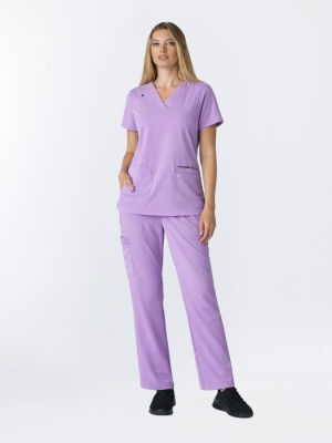 Komplet medyczny składający się z super wygodnej bluzy z dużym, szerokim dekoltem V-neck, i komfortowych spodni o luźnych nogawkach i gumce w pasie. Lepszego połączenia nie znajdziesz!