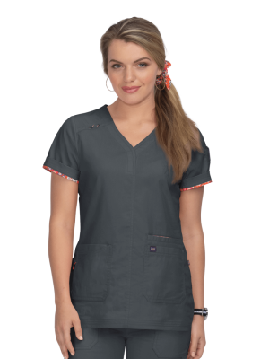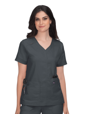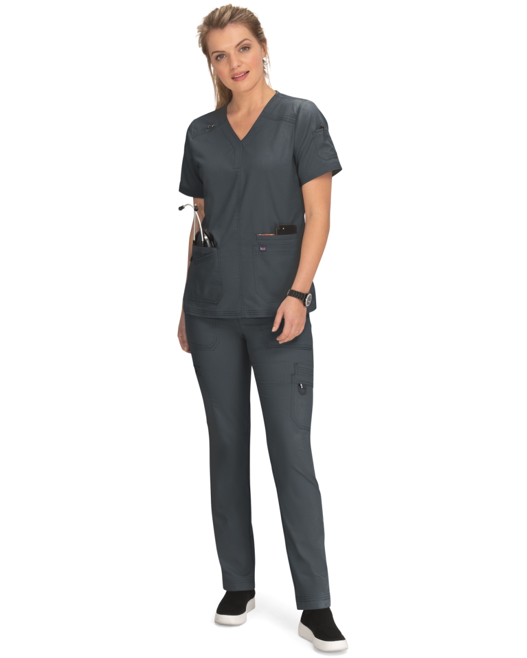 Komplet medyczny damski Koi Stretch bluza Liv z 5 kieszeniami & spodnie Sydney z prostą nogawką, Charcoal