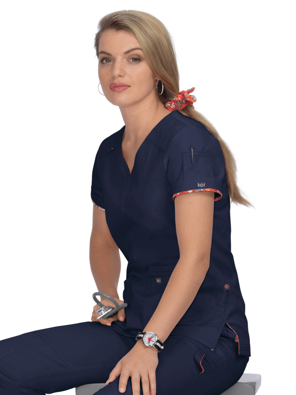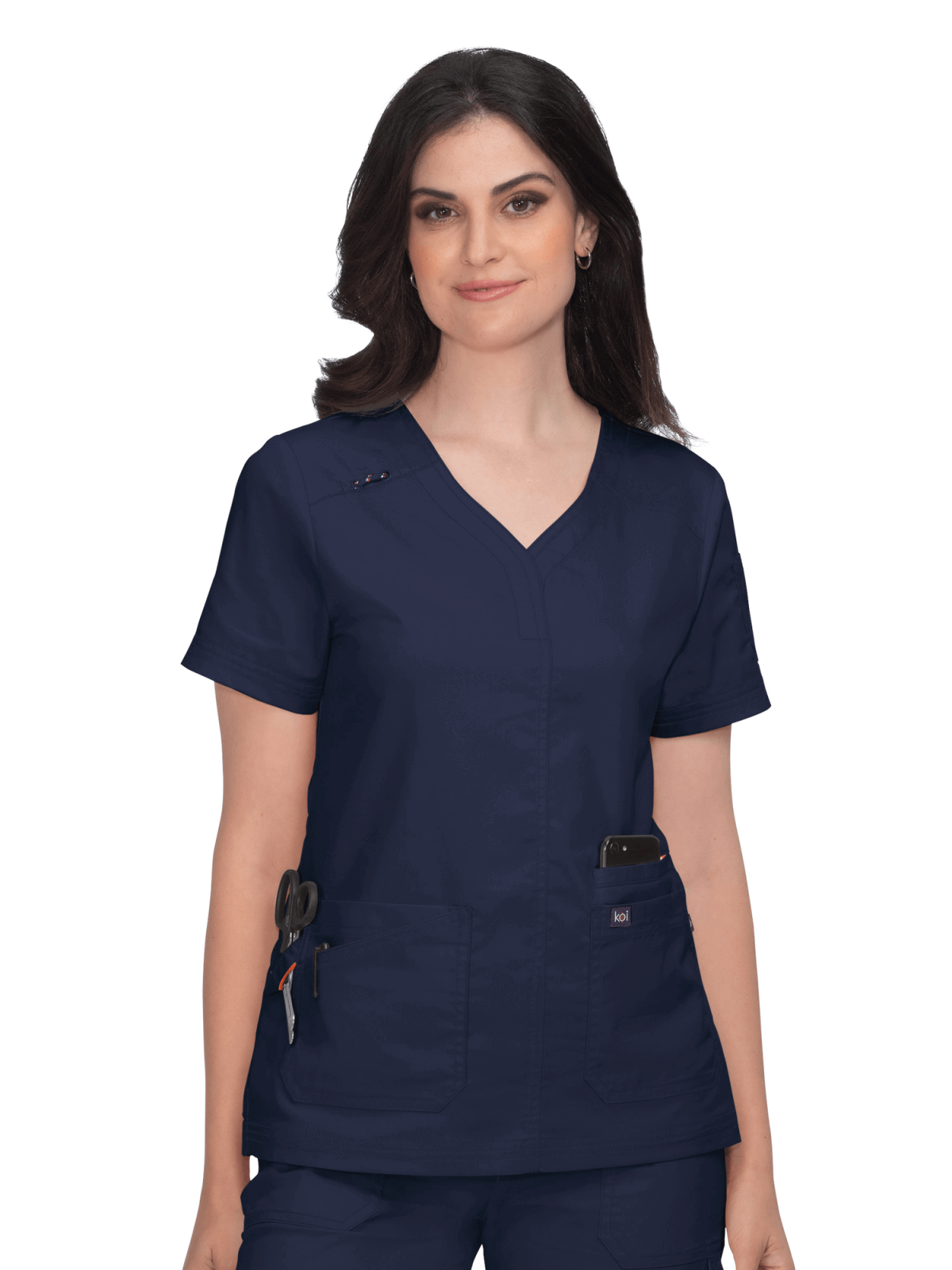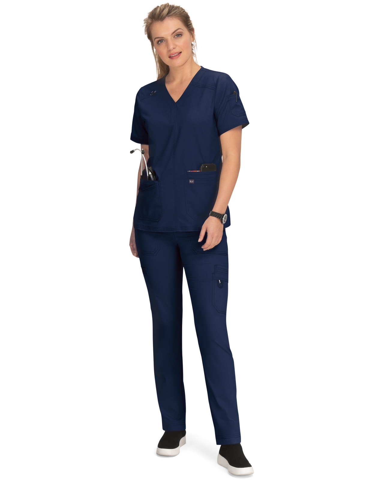 Komplet medyczny damski Koi Stretch bluza Liv z 5 kieszeniami & spodnie Sydney z prostą nogawką, Navy