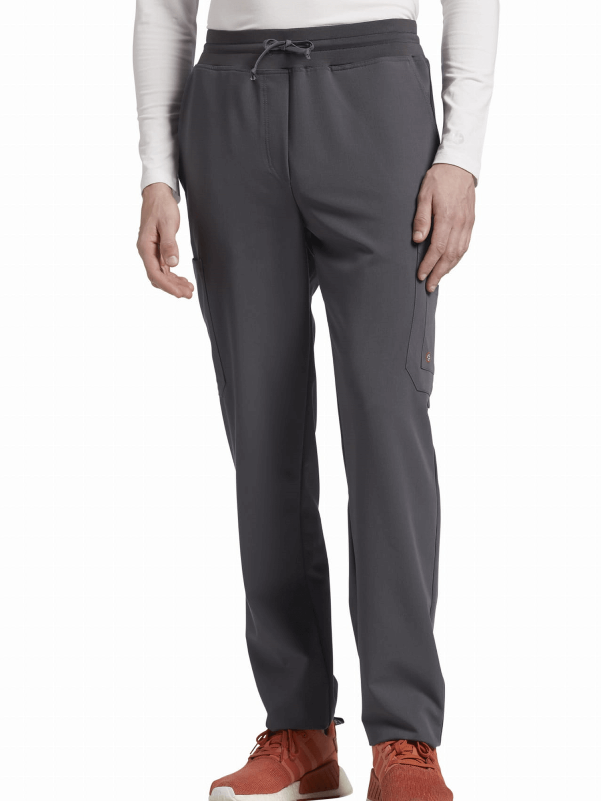 Ten prosty i niezawodny styl z dekoltem w kształcie litery V spełnia swoje zadanie dzięki dwóm dużym przednim kieszeniom naszytym aby schować potrzebne narzędzia i solidnej pętli nad kieszenią do zaczepienia identyfikatora oraz jednej kieszeni na klatce piersiowej. Spodnie ze średnim stanem oraz długimi prostymi nogawkami, które wiązane są w pasie za pomocą troczków,