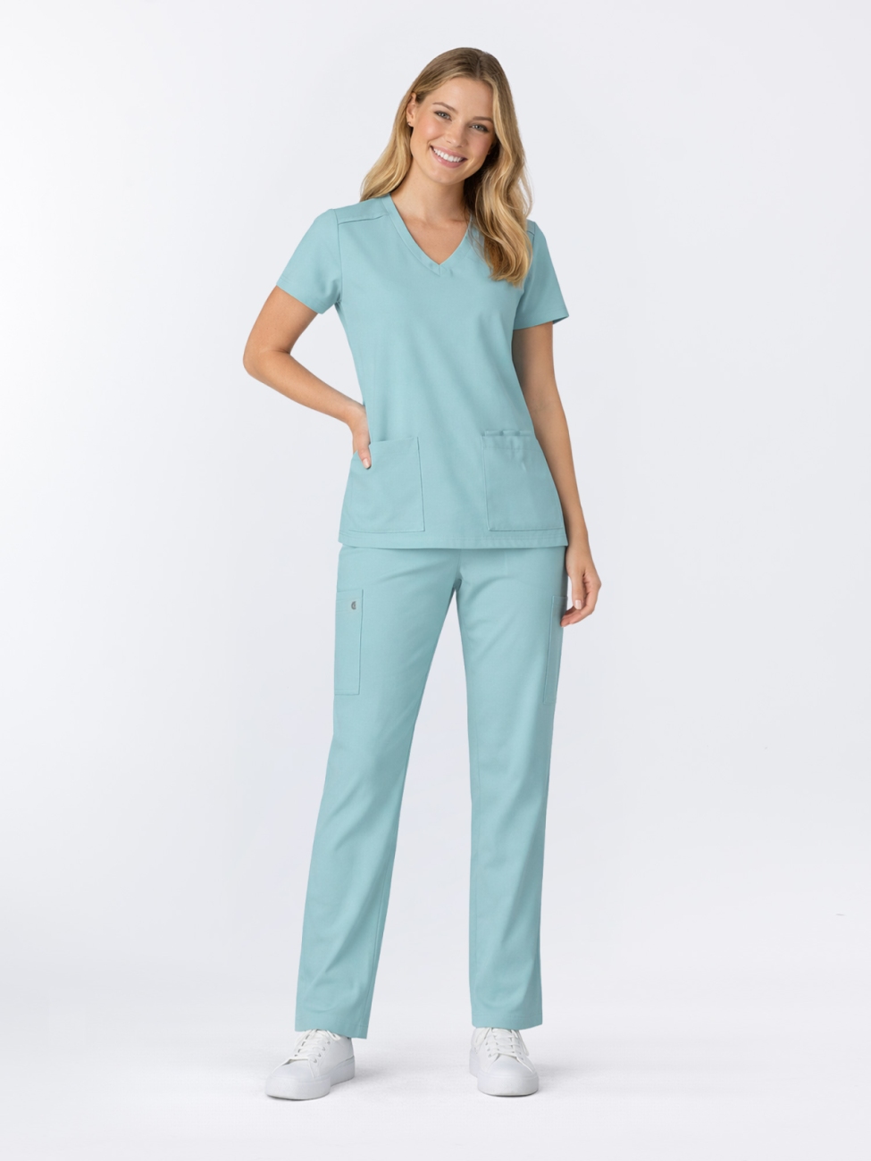 Atria to spodnie zaprojektowane dla profesjonalistek, które chcą maksymalnej wygody, praktycznych rozwiązań i pełnej swobody ruchu podczas każdej zmiany. To model idealny dla osób, które lubią czuć się lekko, komfortowo i mieć wszystko pod ręką — niezależnie od tempa pracy.
