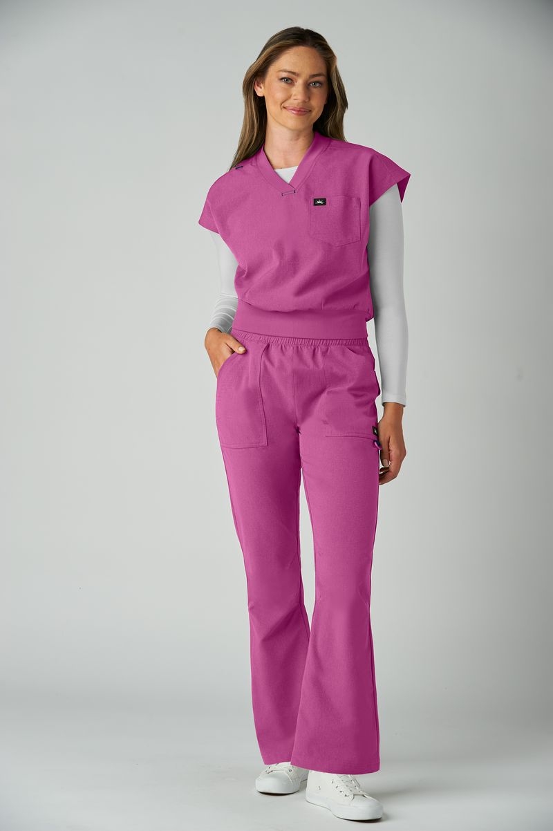 Model Rory z kolekcji Solis x KOI stworzono z myślą o kobietach, które szukają równowagi między elegancją a funkcjonalnością. To spodnie idealne dla osób ceniących wygodę, trwałość i nowoczesny wygląd – zarówno w codziennej pracy medycznej, jak i w intensywnym trybie dnia. Wysoki stan i fason typu bootcut subtelnie podkreślają sylwetkę, zapewniając jednocześnie pełną swobodę ruchów.