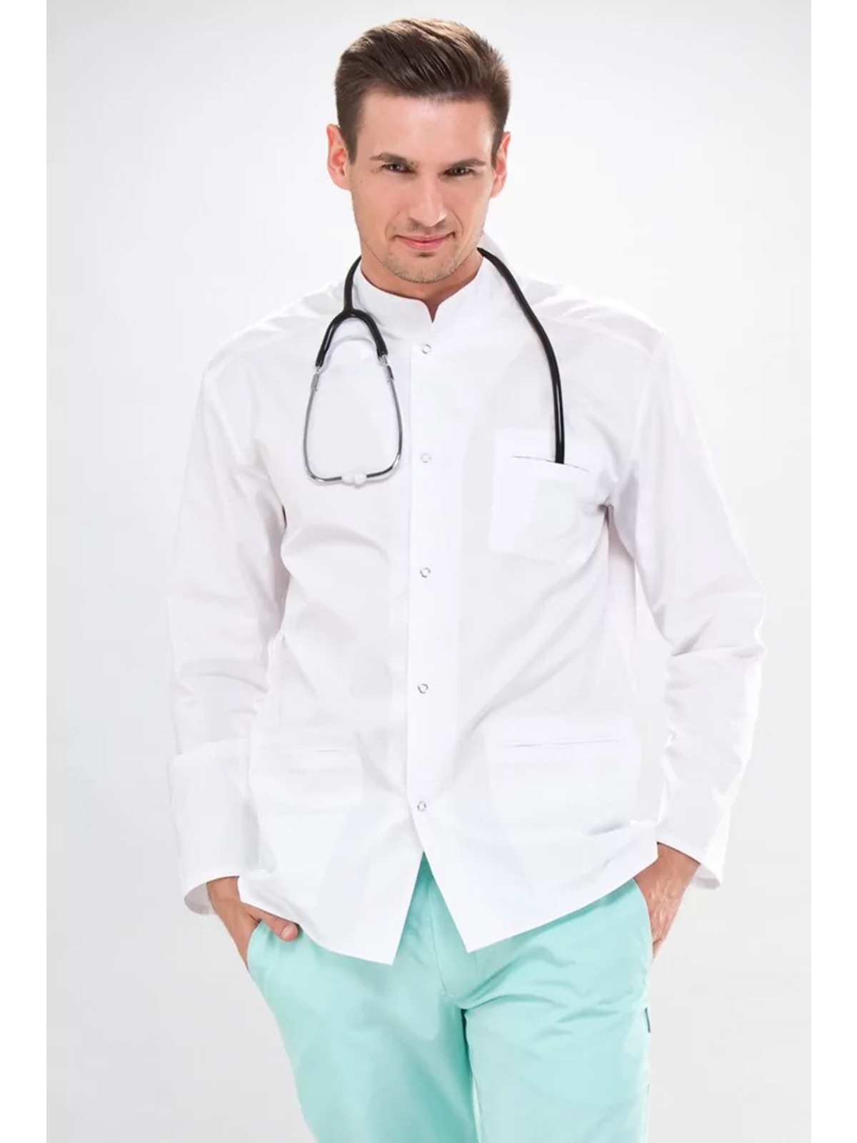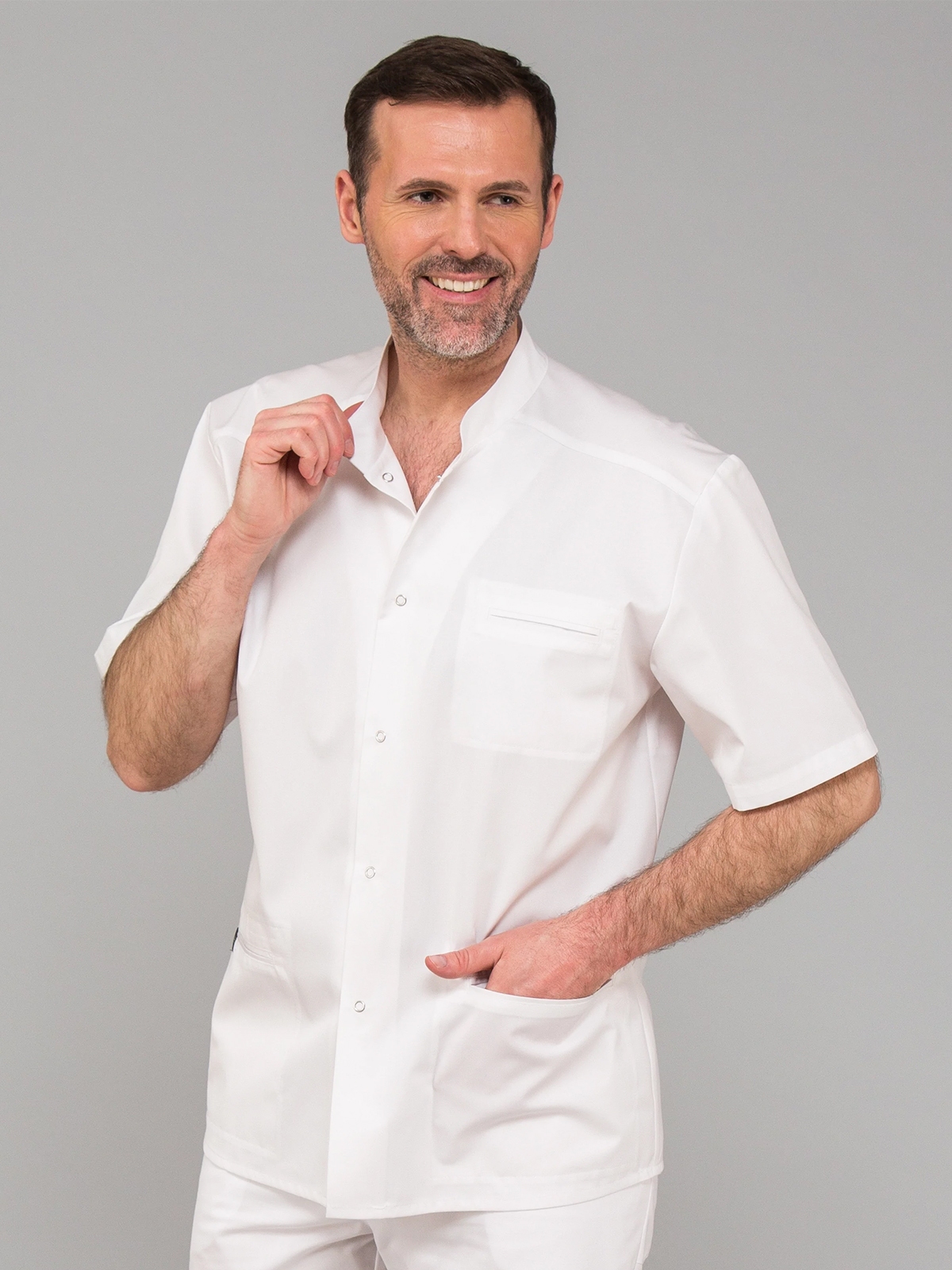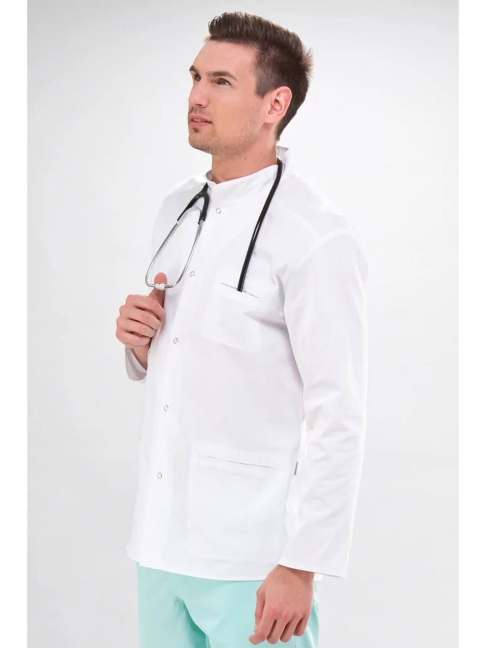 Marynarka medyczna męska biała zapinana na napy Eldan Marek