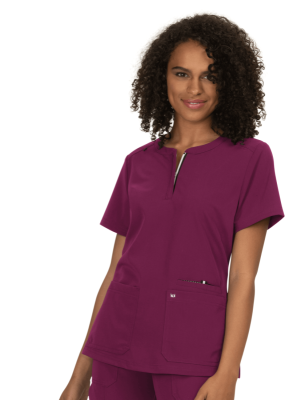 Zaufaj bluzie medycznej Back in Action, w której zawsze wrócisz do akcji! Ta wyjątkowa tkanina została pokochana zarówno przez kobiety, jak i mężczyzn! Wszystko to dzięki zastosowaniu aż 22% sztucznego jedwabiu oraz 5% spandexu, który dodatkowo zapewnia elastyczność materiału. Materiał z domieszką jedwabiu to luksus i jakość, które pokochasz od pierwszego dotyku. Bluza medyczna o oryginalnym kroju z zaokrąglonym dekoltem wykończonym zameczkiem umożliwiającym zwiększenie lub zmniejszenie dekoltu. Jak przystało na profesjonalną bluzę medyczną, posiada pętelkę do identyfikatora, który zawsze będzie w widocznym miejscu. Bluza posiada trzy pojemne kieszenie naszyte na przodzie bluzy, jedna kryta z widoczną lamówką powyżej przedniej kieszeni. Dodatkowo bluza posiada rozcięcia po bokach dla bardziej komfortowego poruszania się. Z tyłu na plecach zastosowano zaszewki, dla lepszego dopasowania i taliowania bluzy, aby podkreślić kobiecą figurę.
