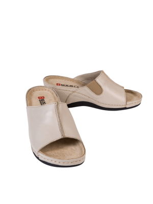 Klapki zdrowotne damskie z linii Buxa ANATOMIC wykonane zostały w całości z miękkiej skóry polskiego pochodzenia. Klapki posiadają anatomicznie profilowaną skórzaną wkładkę z 3 strefami podpierającymi łuki stopy: