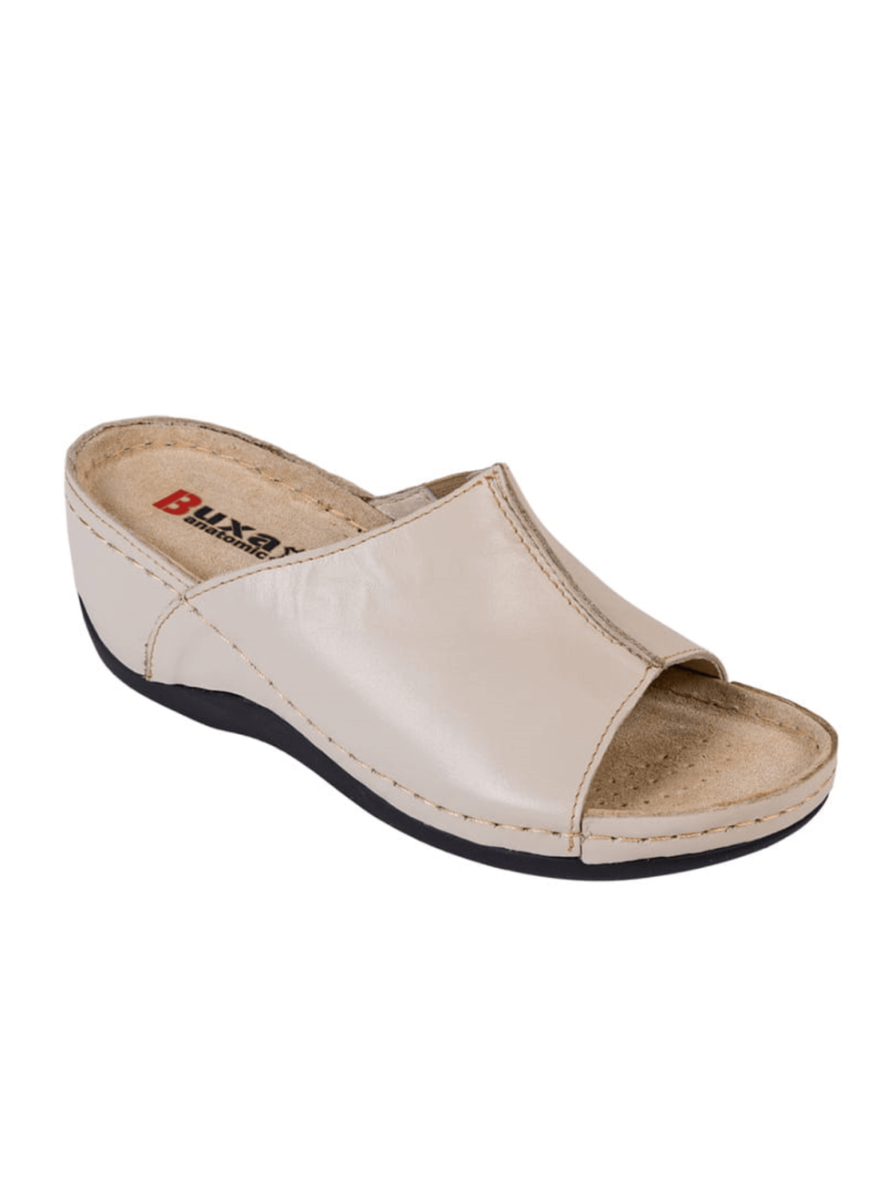 Obuwie zdrowotne BUXA ANATOMIC z odkrytymi palcami. Wykonane z miękkiej skóry polskiego pochodzenia. Anatomicznie profilowana skórzana wkładka zapewnia podparcie stopy w 3 strefach.