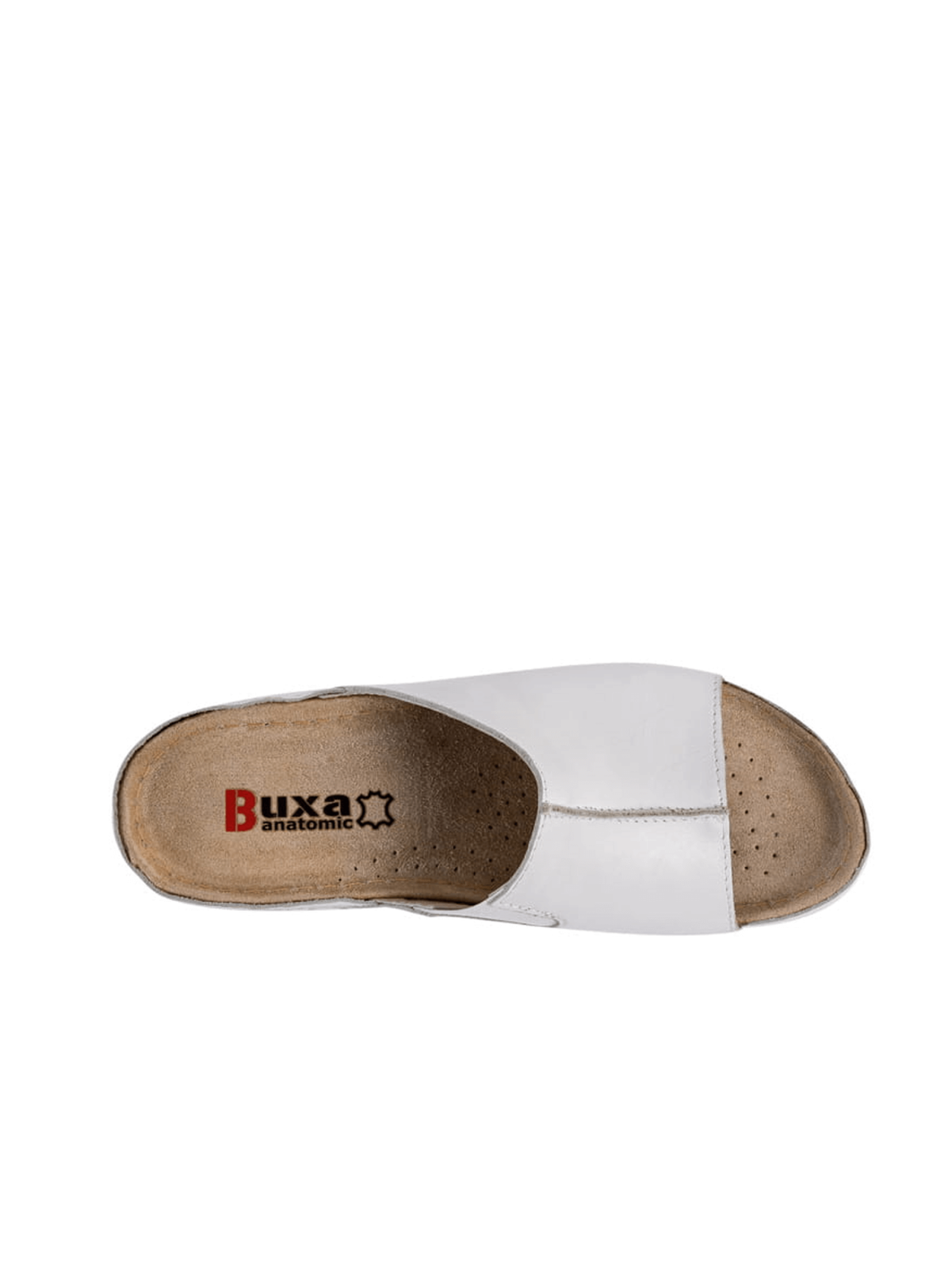 Obuwie zdrowotne BUXA ANATOMIC z odkrytymi palcami. Wykonane z miękkiej skóry polskiego pochodzenia. Anatomicznie profilowana skórzana wkładka zapewnia podparcie stopy w 3 strefach.