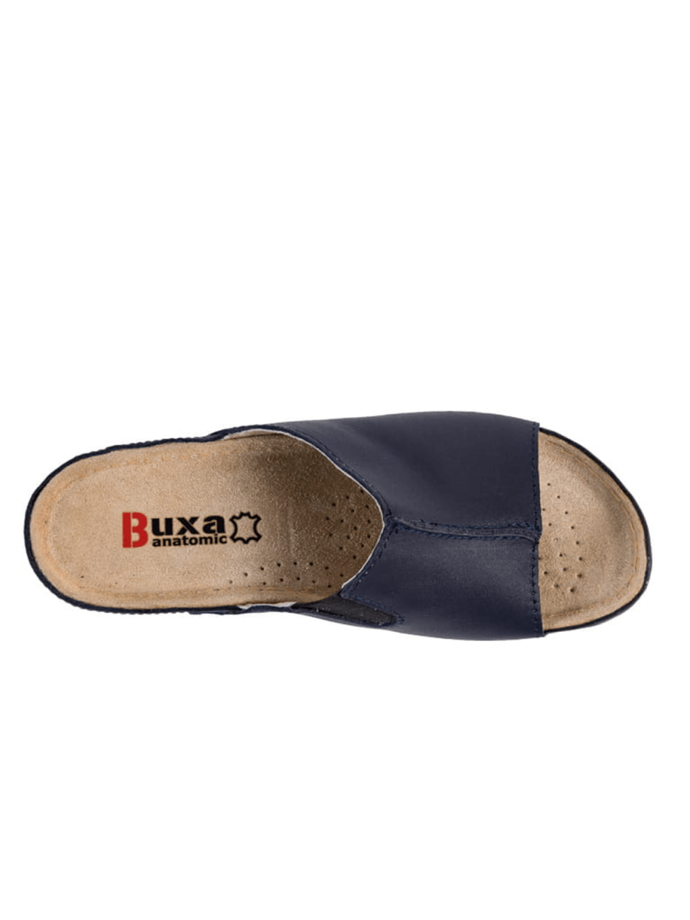 Obuwie zdrowotne BUXA ANATOMIC z odkrytymi palcami. Wykonane z miękkiej skóry polskiego pochodzenia. Anatomicznie profilowana skórzana wkładka zapewnia podparcie stopy w 3 strefach.