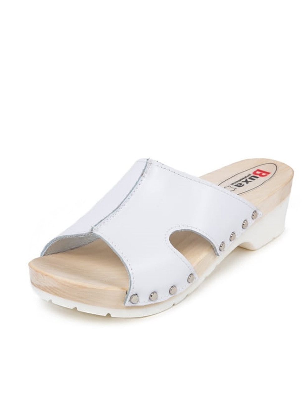 Podhalańska firma Buxa od ponad trzydziestu lat dba o komfort użytkowania swojego obuwia. Cel osiągnęła stosując tylko naturalne drewno lipowe i skórę oraz niwelującą niechciane wstrząsy gumę poliuretanową. Nie musisz obawiać się żylaków ani bólu kręgosłupa czy nóg. Specjalna wkładka, perforacja i w zależności od modelu odsłonięte palce, nadają zdrowotne właściwości produktom tej firmy. Nie tylko personel medyczny preferuje ten rodzaj obuwia, w którym stopa nie męczy się ani nie poci, a dostosowany do każdego kształtu stopy anatomiczny projekt pozytywnie wpływa na twoją postawę. Chodaki świetnie nadają się nie tylko do stania, ale dzięki niewielkiej jak na ten rodzaj obuwia wadze - również do chodzenia. Przez użycie dodatkowego bieżnikowania i nieścieralnej antypoślizgowej gumy są wyjątkowo bezpieczne niezależnie od podłoża.
