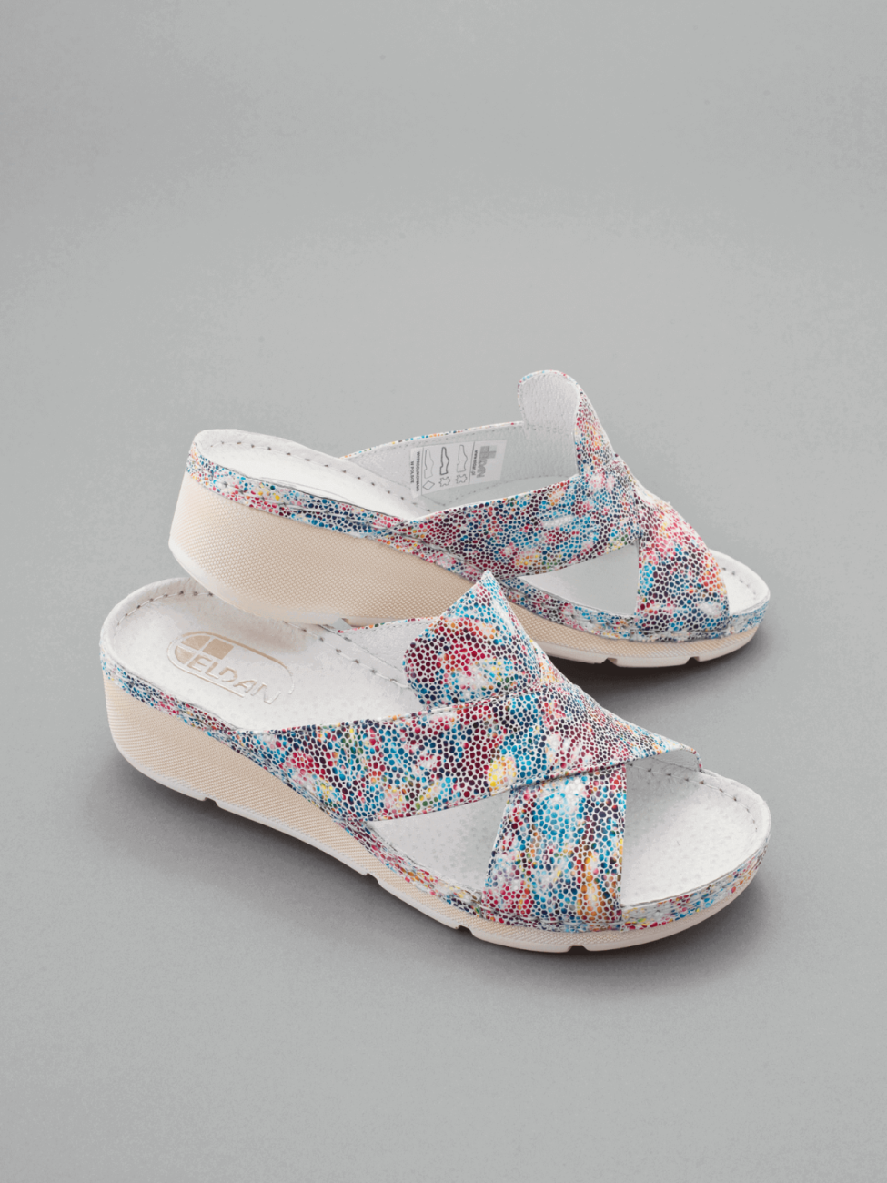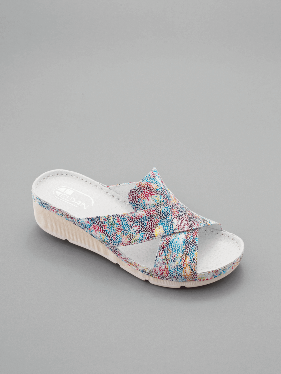 Buty medyczne na 4,5-centymetrowym koturnie, będące wygodną i komfortową alternatywą dla szpilek. Idealne dla kobiet, które cenią sobie styl a jednocześnie zależy im na wygodzie. Dzięki odkrytym palcom Twoja stopa będzie dobrze wentylowana i nie będzie się pocić.