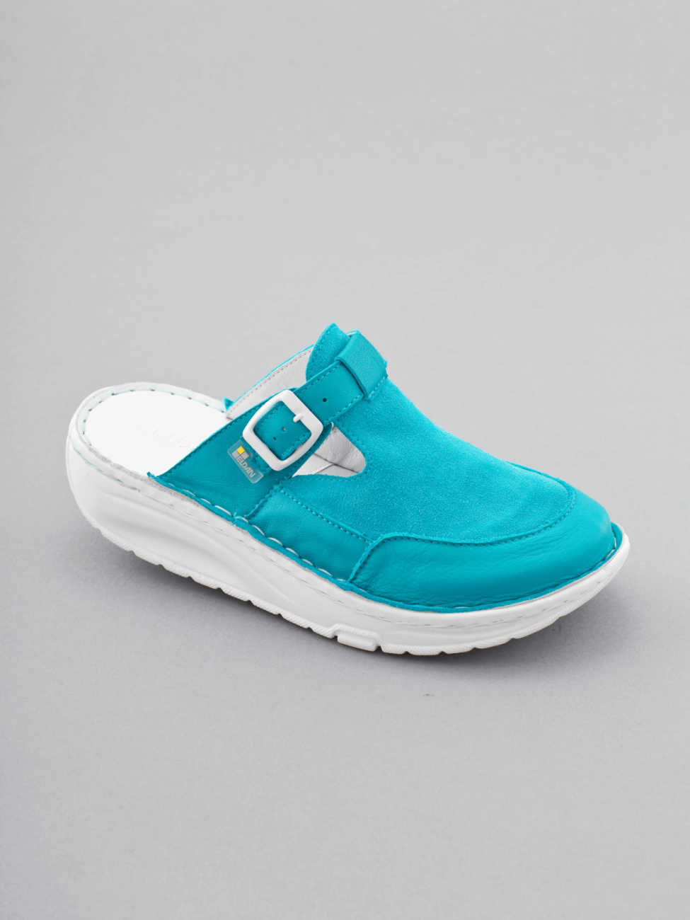 Super wygodne klapki damskie medyczne, w których wierzch i wyściółka są wykonane z naturalnej skóry. Podeszwa zrobiona jest z tworzywa sztucznego.