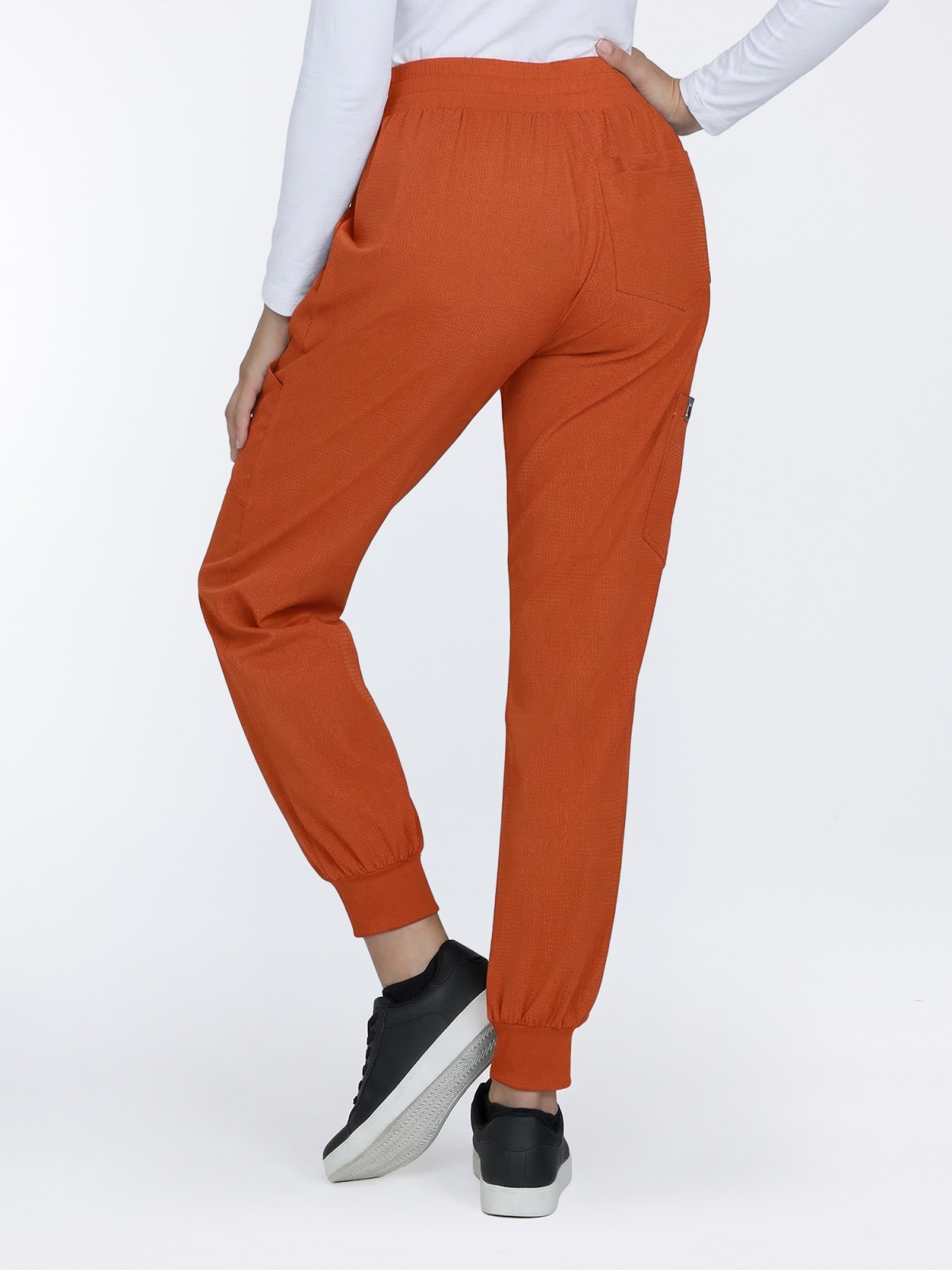 Model Hettie z kolekcji Solis x Koi to joggery stworzone dla specjalistek, które chcą połączyć maksymalny komfort z nowoczesnym stylem. Wykonane z ultrawytrzymałej, a jednocześnie miękkiej jak jedwab tkaniny ExoFlex™, gwarantują wygodę od pierwszego kroku aż do końca dyżuru. Ich luźniejszy, współczesny krój pięknie układa się na sylwetce, zapewniając swobodę ruchu niezależnie od tempa dnia.