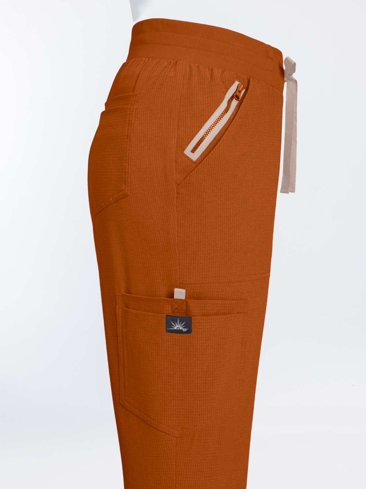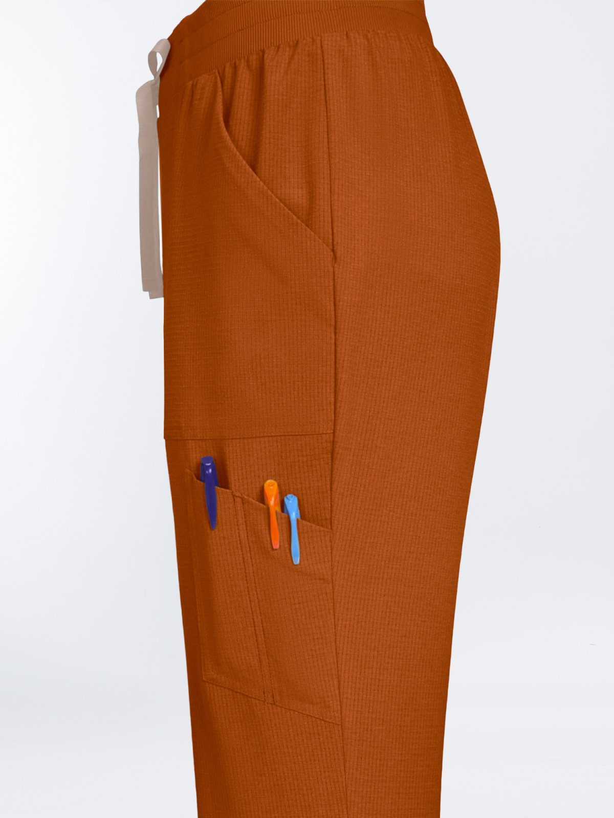 Przede wszystkim funkcjonalność na najwyższym poziomie. Aż 9 praktycznych kieszeni, w tym przemyślane przegródki na drobiazgi, pozwalają mieć przy sobie wszystko, czego potrzebujesz — od telefonu po akcesoria medyczne. Elastyczny pas ze sznurkiem daje idealne dopasowanie, a prążkowane mankiety przy kostkach dodają nowoczesnego, sportowego charakteru. Materiał ExoFlex™ zapewnia doskonałą wytrzymałość, odporność na codzienne użytkowanie i elastyczność, która pracuje razem z Tobą.