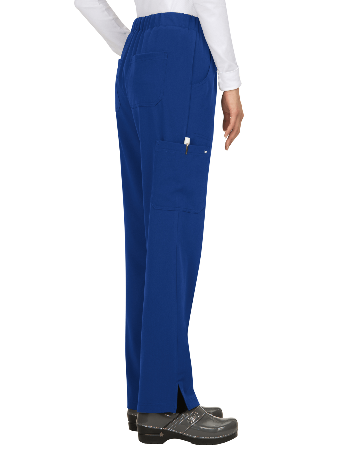 Model oferuje łącznie pięć praktycznych kieszeni: dwie kryte z wygodnym bocznym wejściem, dwie klasyczne z tyłu oraz jedną głęboką kieszeń na prawym udzie – idealną na stetoskop lub inne większe akcesoria. To przemyślany układ, który pozwala uporządkować wszystko, czego potrzebujesz podczas pracy.