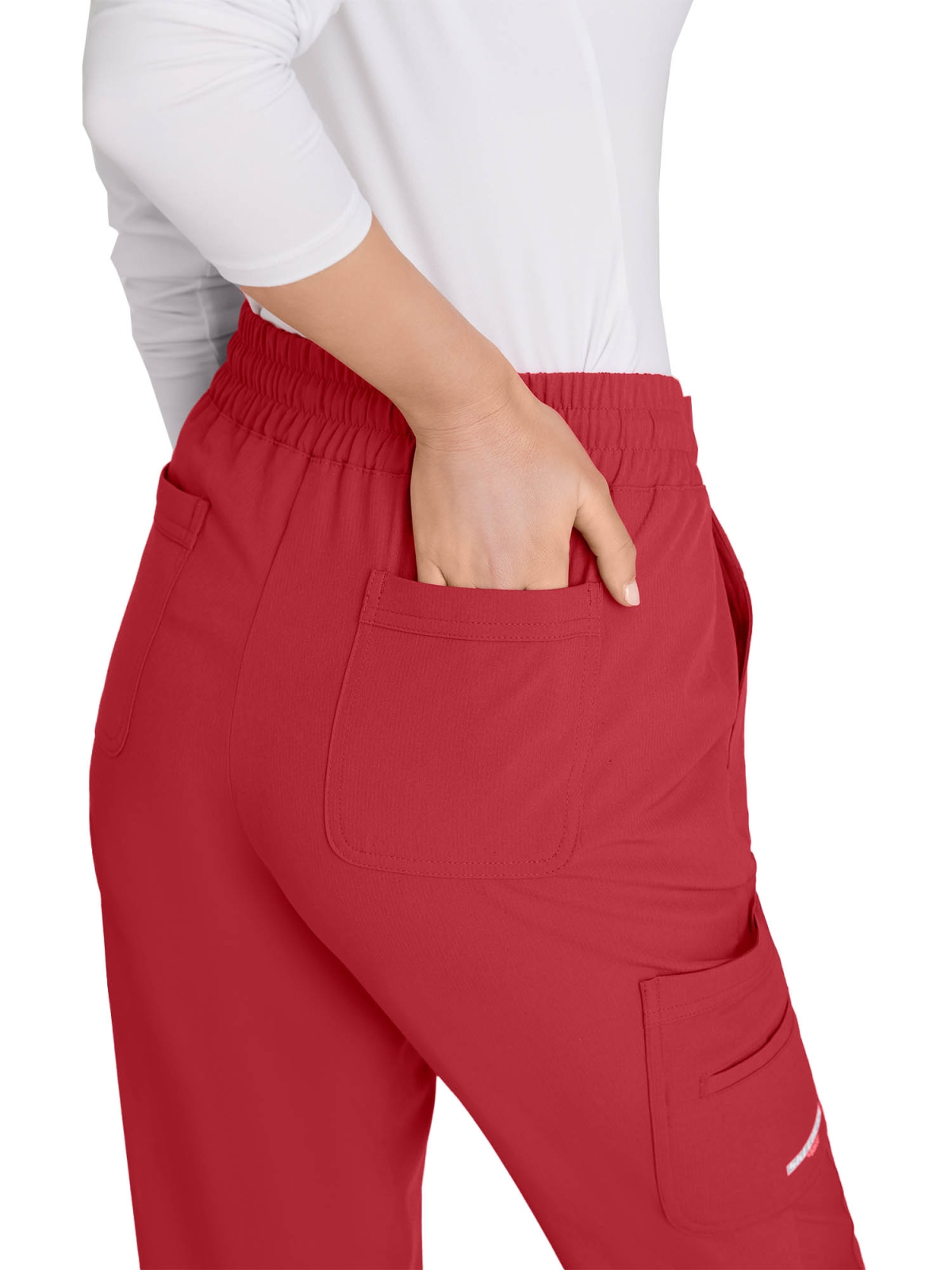 Funkcjonalność, o którą naprawdę zadbano. Sześć praktycznych kieszeni — w tym podwójna kieszeń cargo i dwie kieszenie tylne — daje Ci przestrzeń na wszystko, co chcesz mieć pod ręką: telefon, nożyczki, identyfikator czy notes. Tkanina odprowadza wilgoć, jest odporna na zagniecenia i zachowuje świeżość nawet podczas długich, intensywnych zmian.