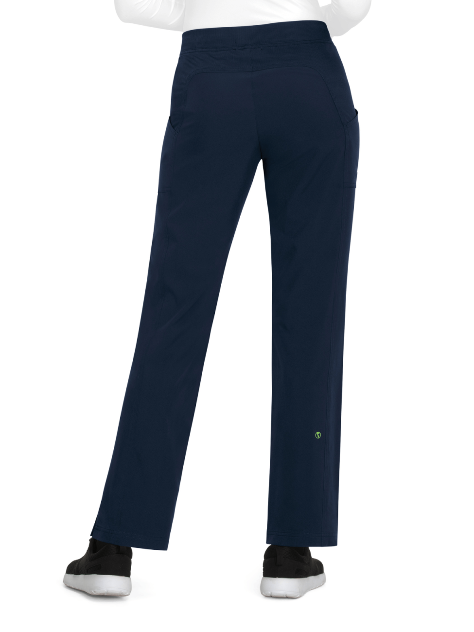Przyjazne naturze spodnie medyczne, wykonane z recyklingowanych materiałów. W pasie wyregulujesz je za pomocą troczków i gumy, na dole nogawki niewielkie rozcięcia zapewniają niczym nieskrępowane ruchy. Całości dopełniają 4 kieszenie.