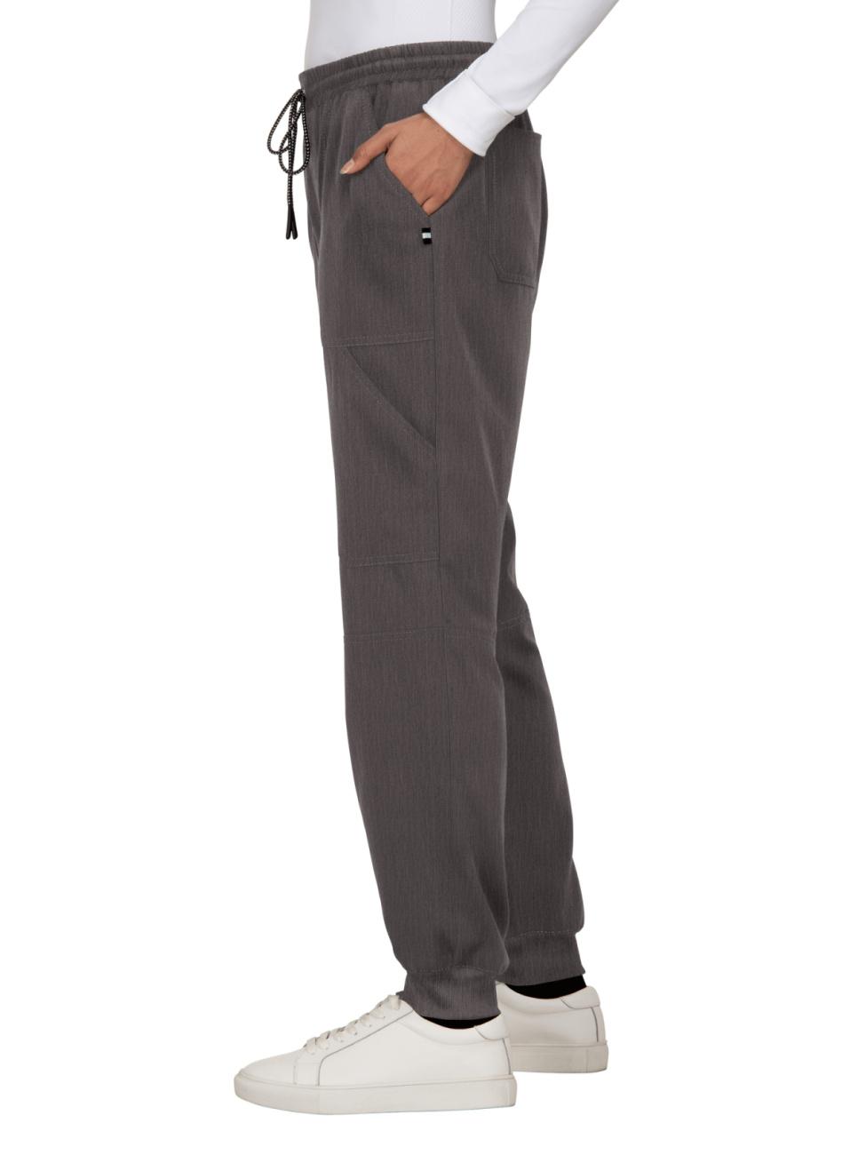 Zdecydowanie tak! Elastyczny ściągacz przy kostce nadaje spodniom sportowego charakteru i sprawia, że świetnie wyglądają z każdym typem obuwia medycznego. Guma w pasie oraz regulujący troczek gwarantują idealne dopasowanie w talii, niezależnie od Twojego trybu pracy.